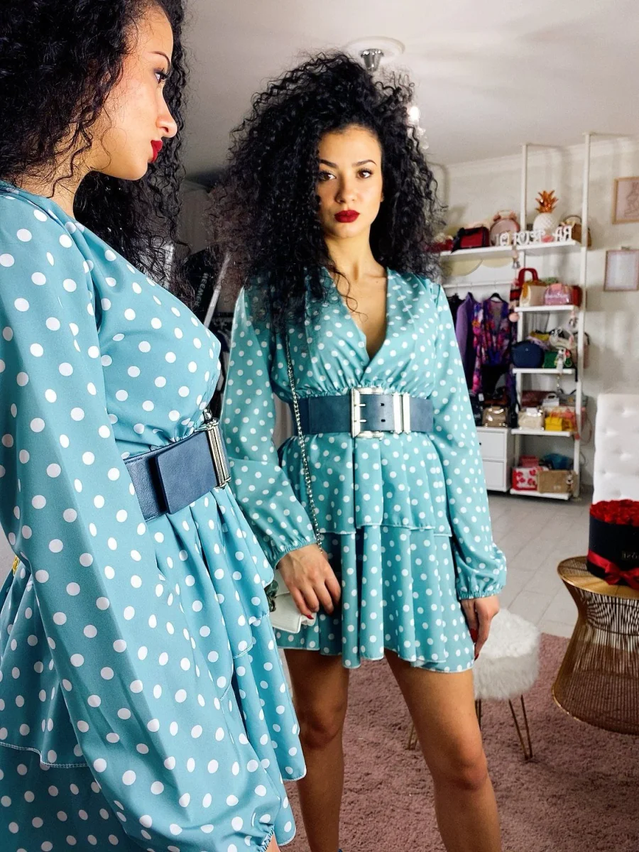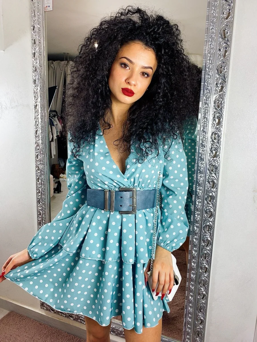 Recensisci per primo “Abito a balze a pois verdeacqua”