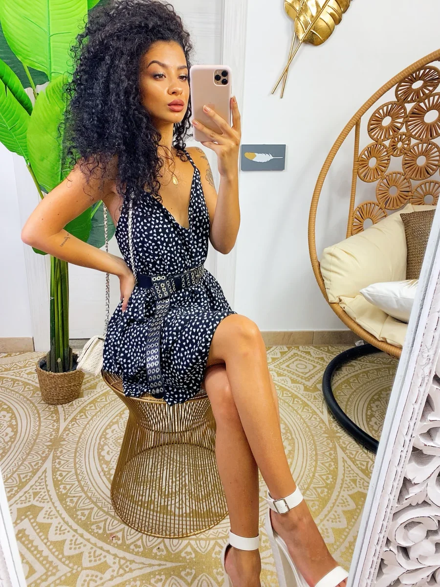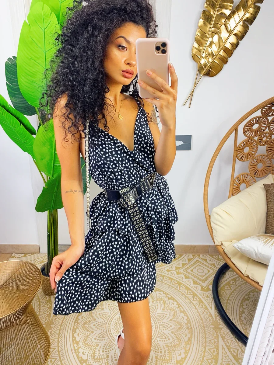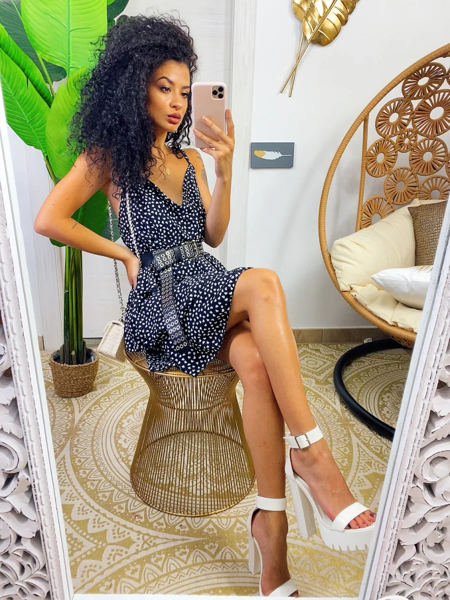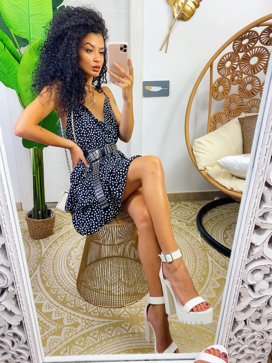 Abito a balze in cotone a bretellina con stampa a fiori sui toni del Fuxia e verdeacqua . Elasticizzato sul petto perciò adattabile a tutte le taglie. Taglio in vita e 3 balze