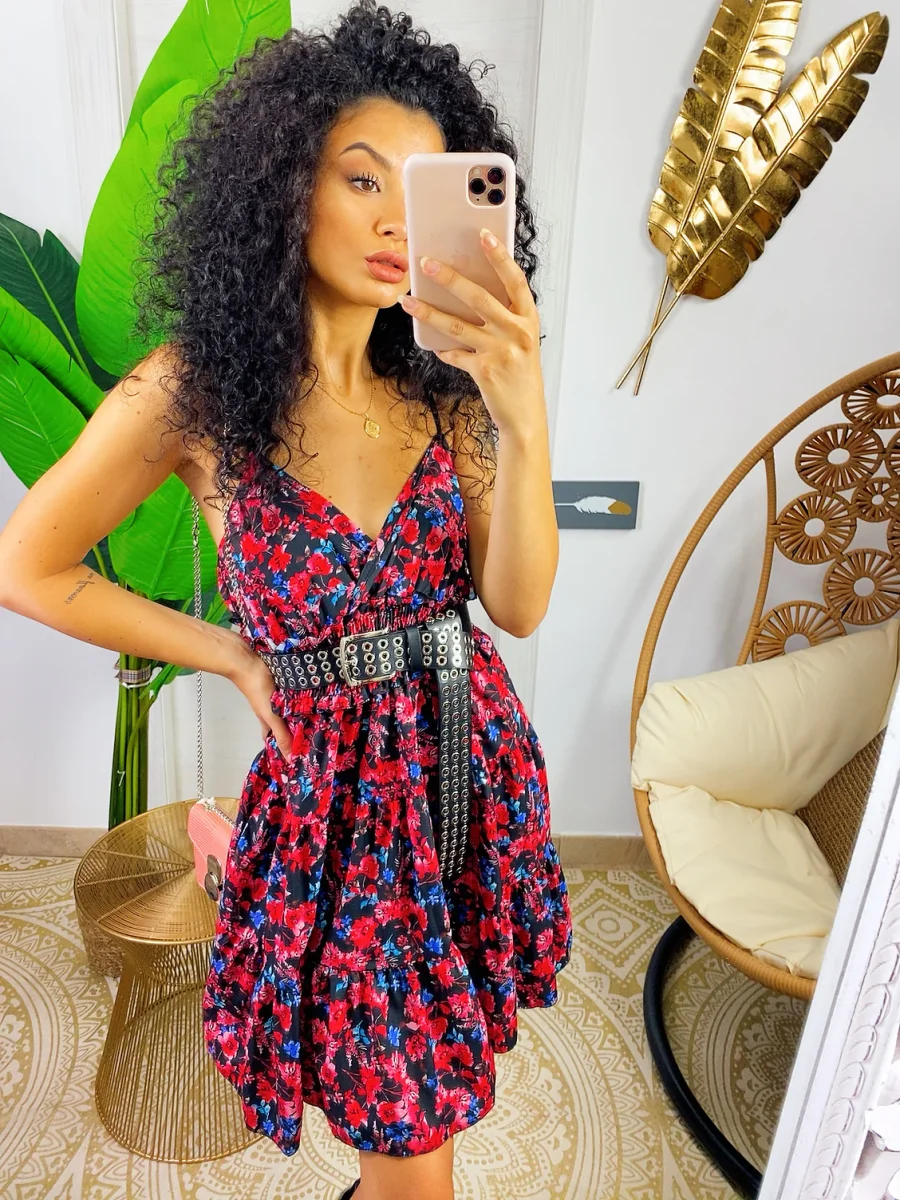 Recensisci per primo “Abito a balze con gonna ampia a fiori rossi”