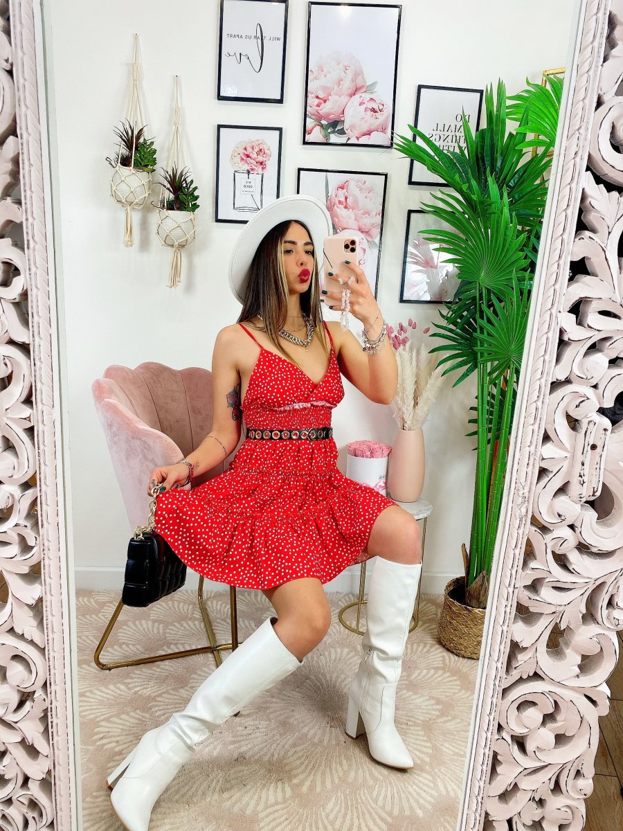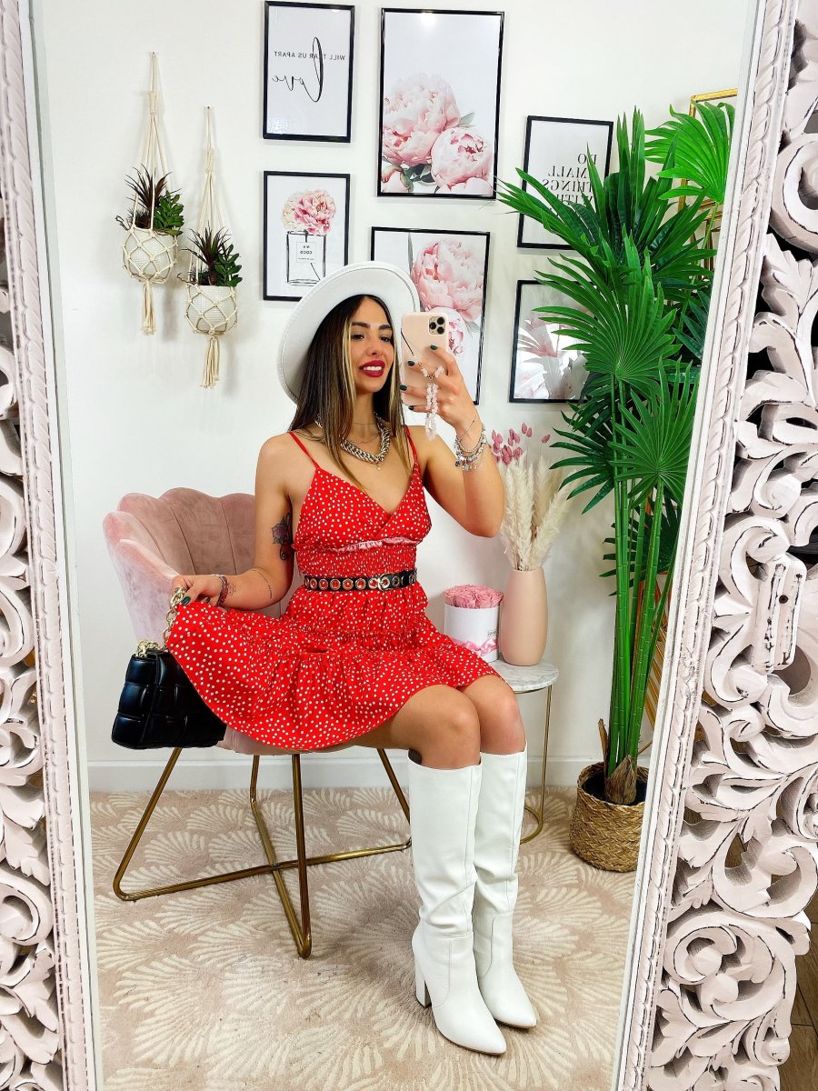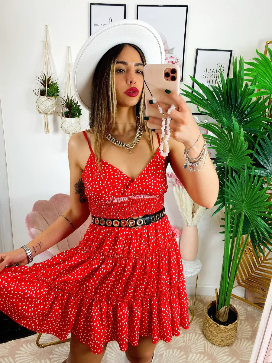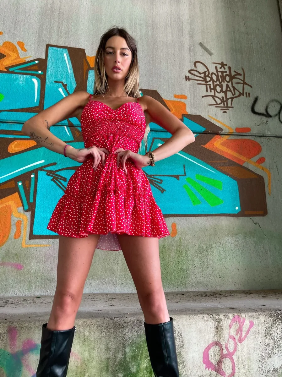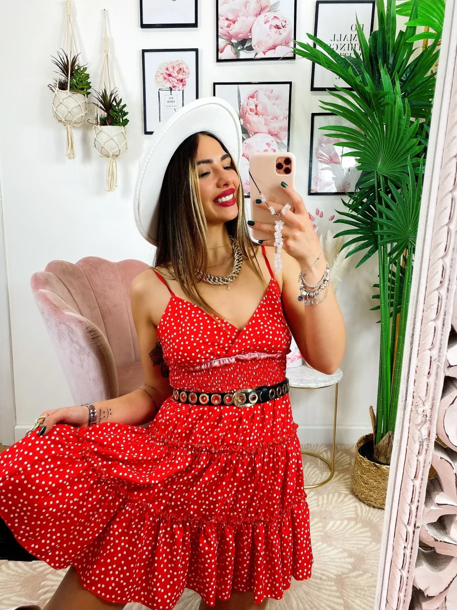 Recensisci per primo “Abito a balze con gonna ampia a pois Rosso”