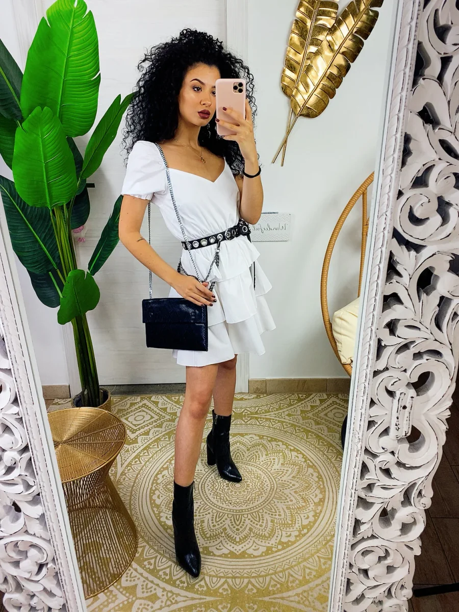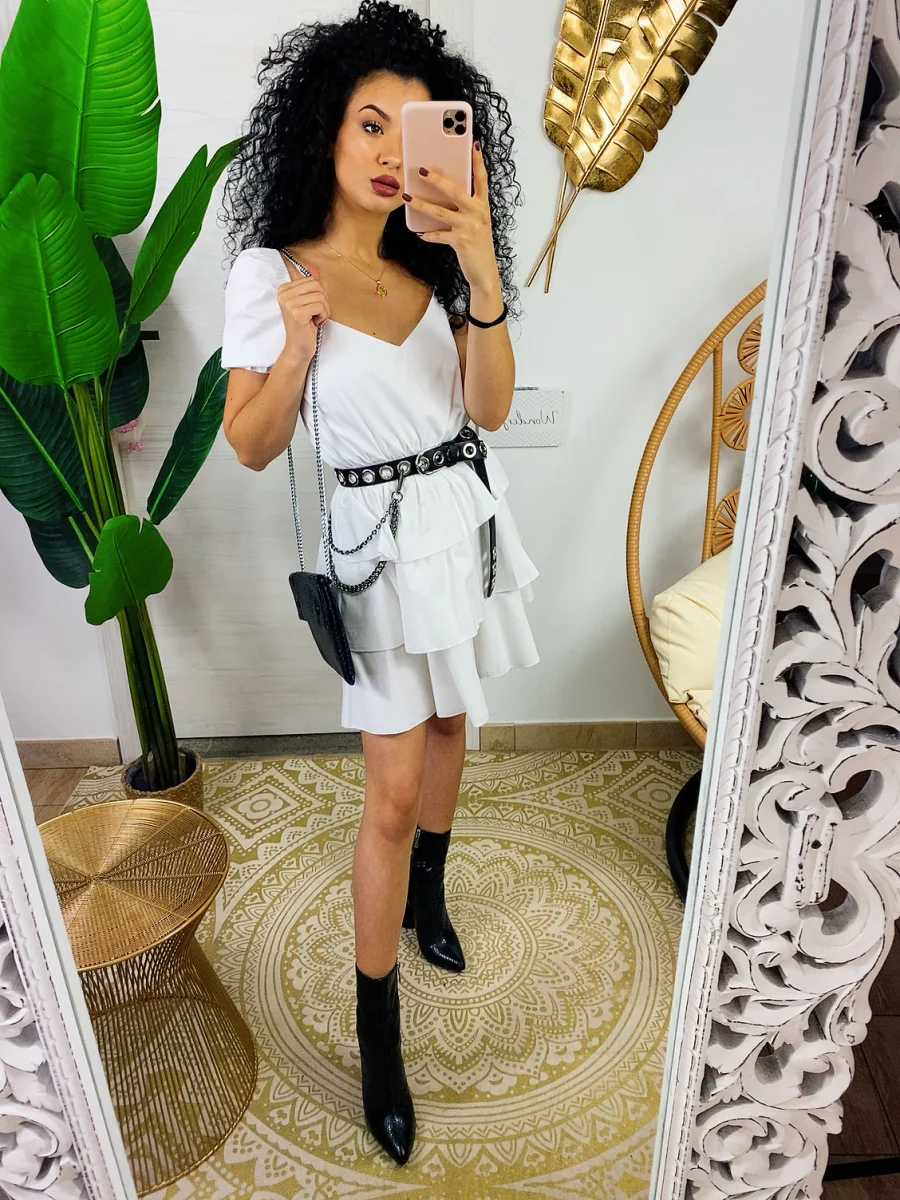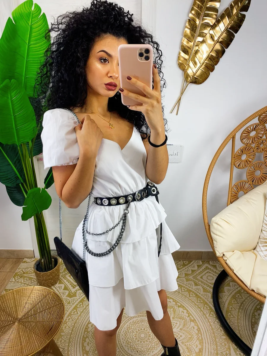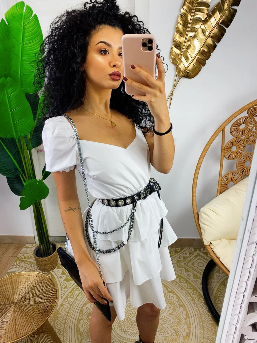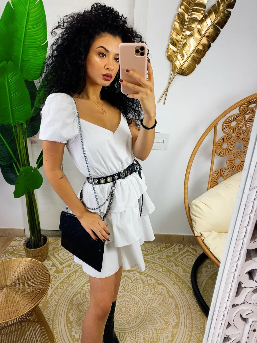 Abito a balze in cotone con manica . Elasticizzato