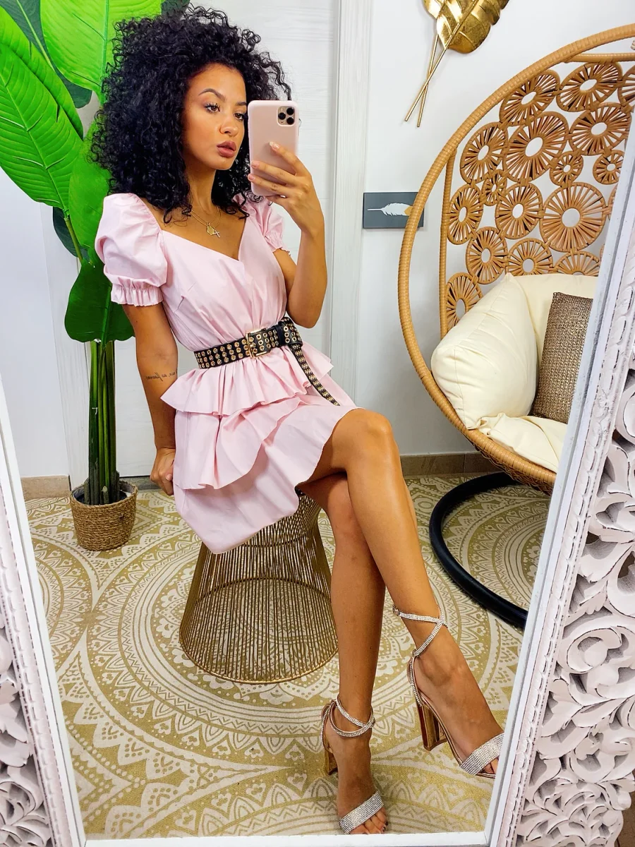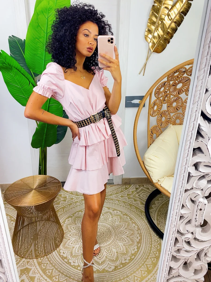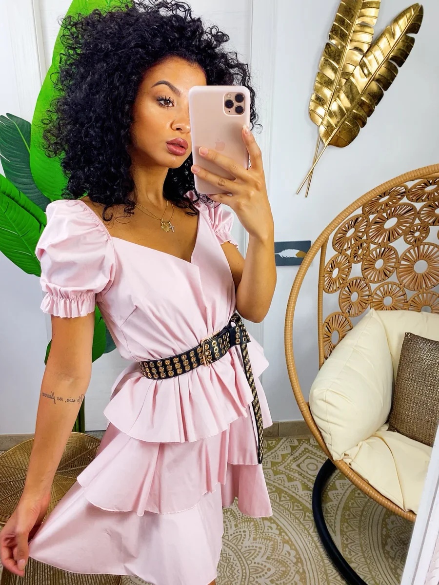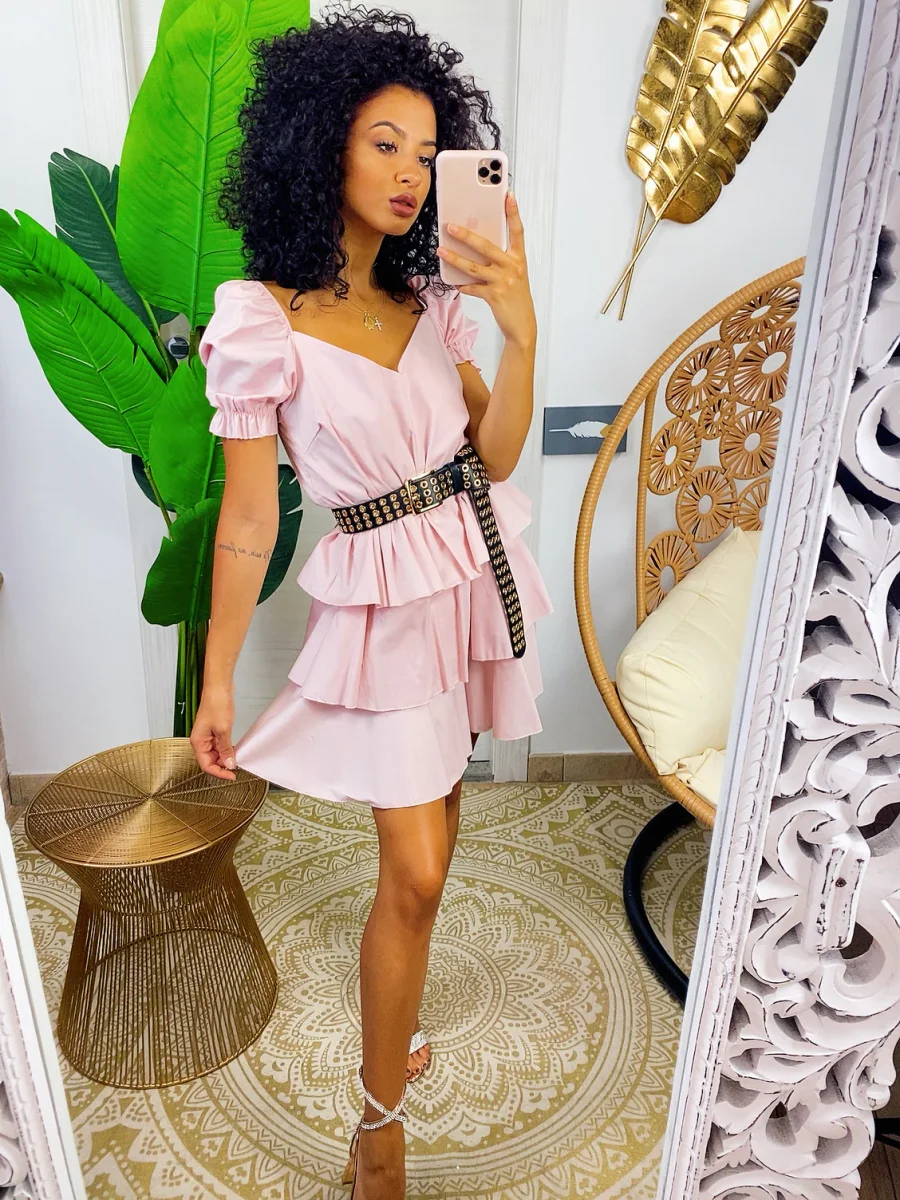 Abito a balze in cotone con manica . Elasticizzato