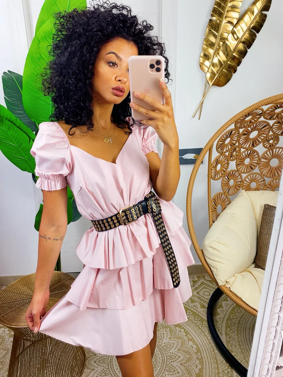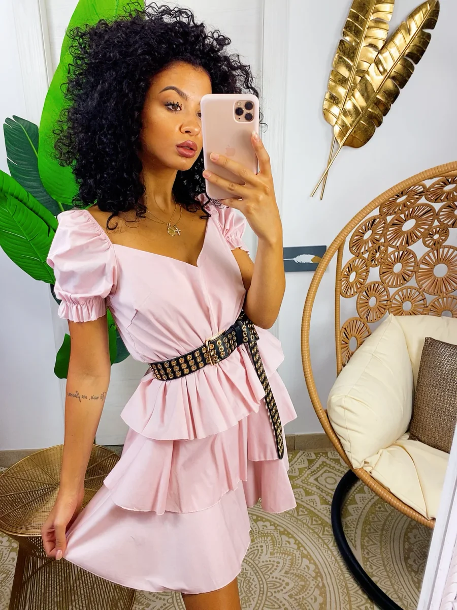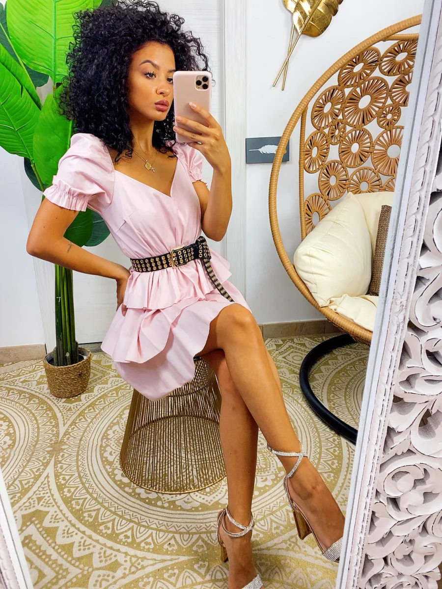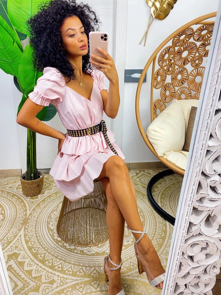 Abito a balze in cotone con manica . Elasticizzato