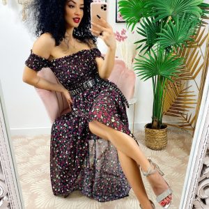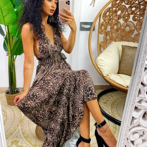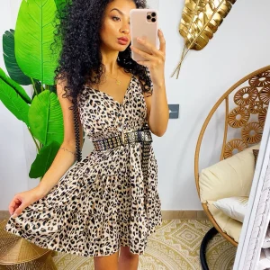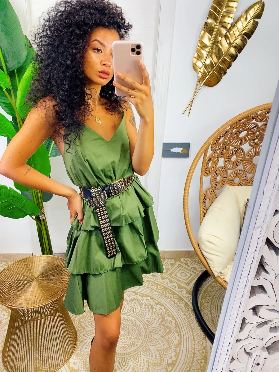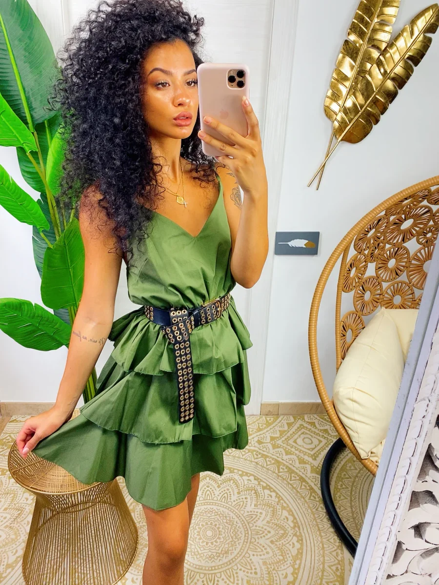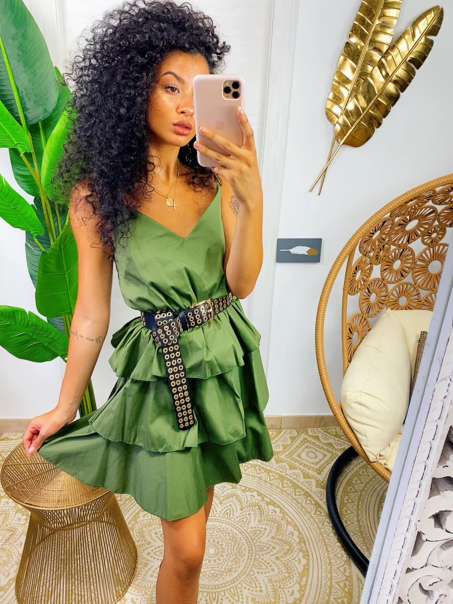 Abito a balze in cotone verde Elasticizzato sul petto perciò adattabile a tutte le taglie.