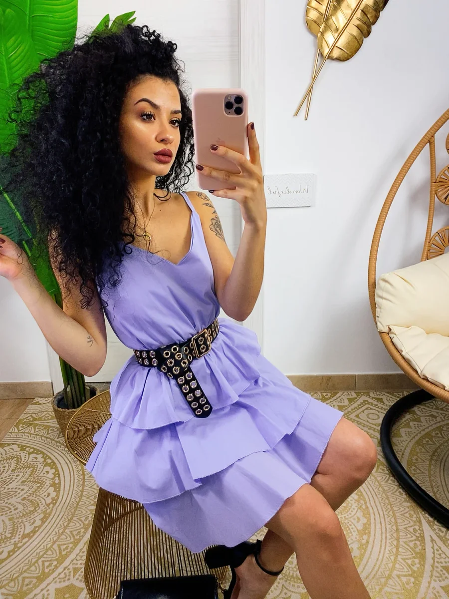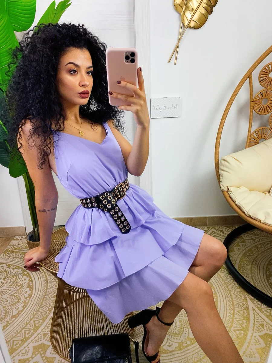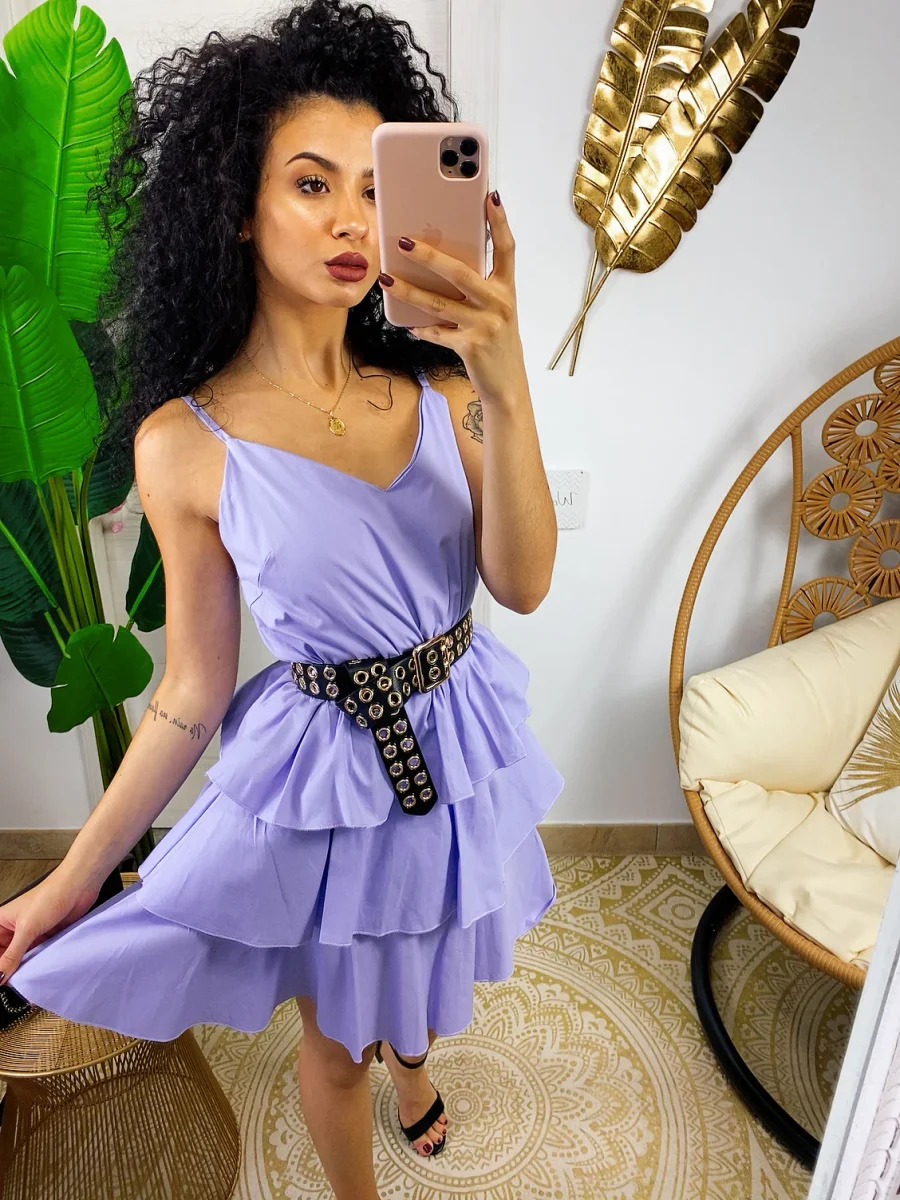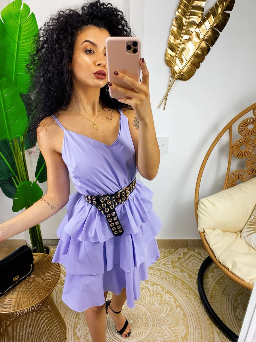 Abito a balze in cotone a bretellina. Elasticizzato sul petto perciò adattabile a tutte le taglie.