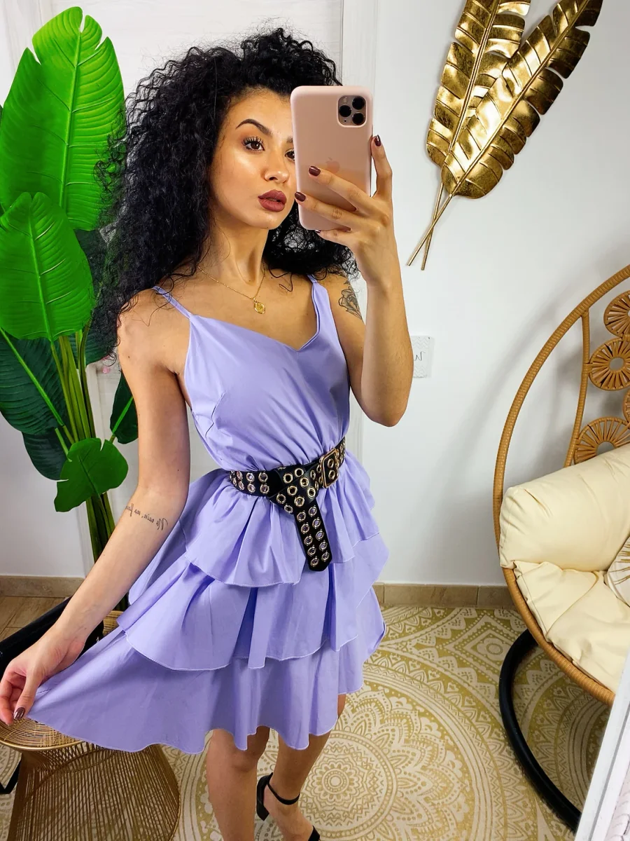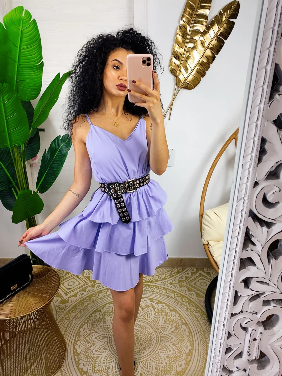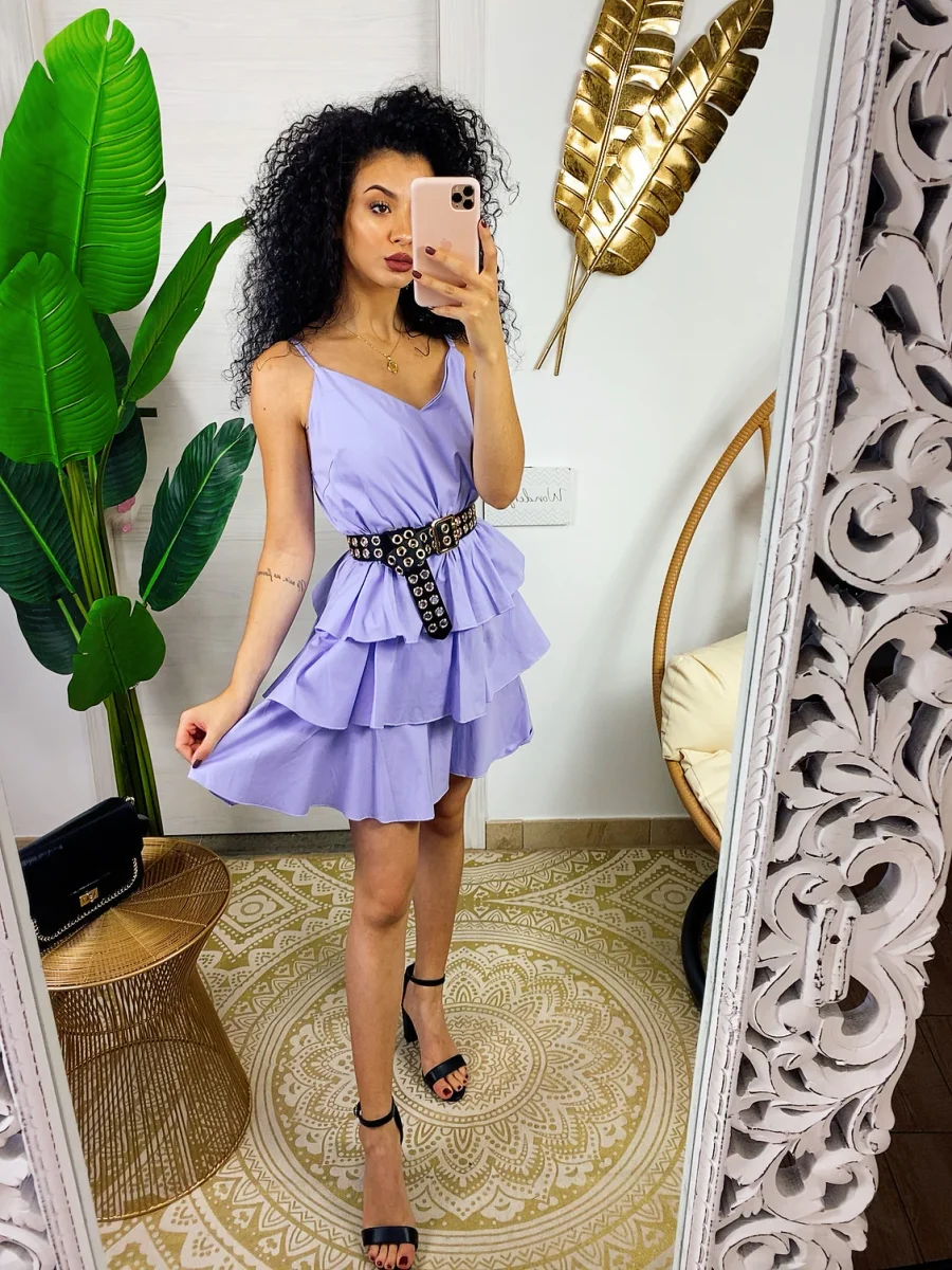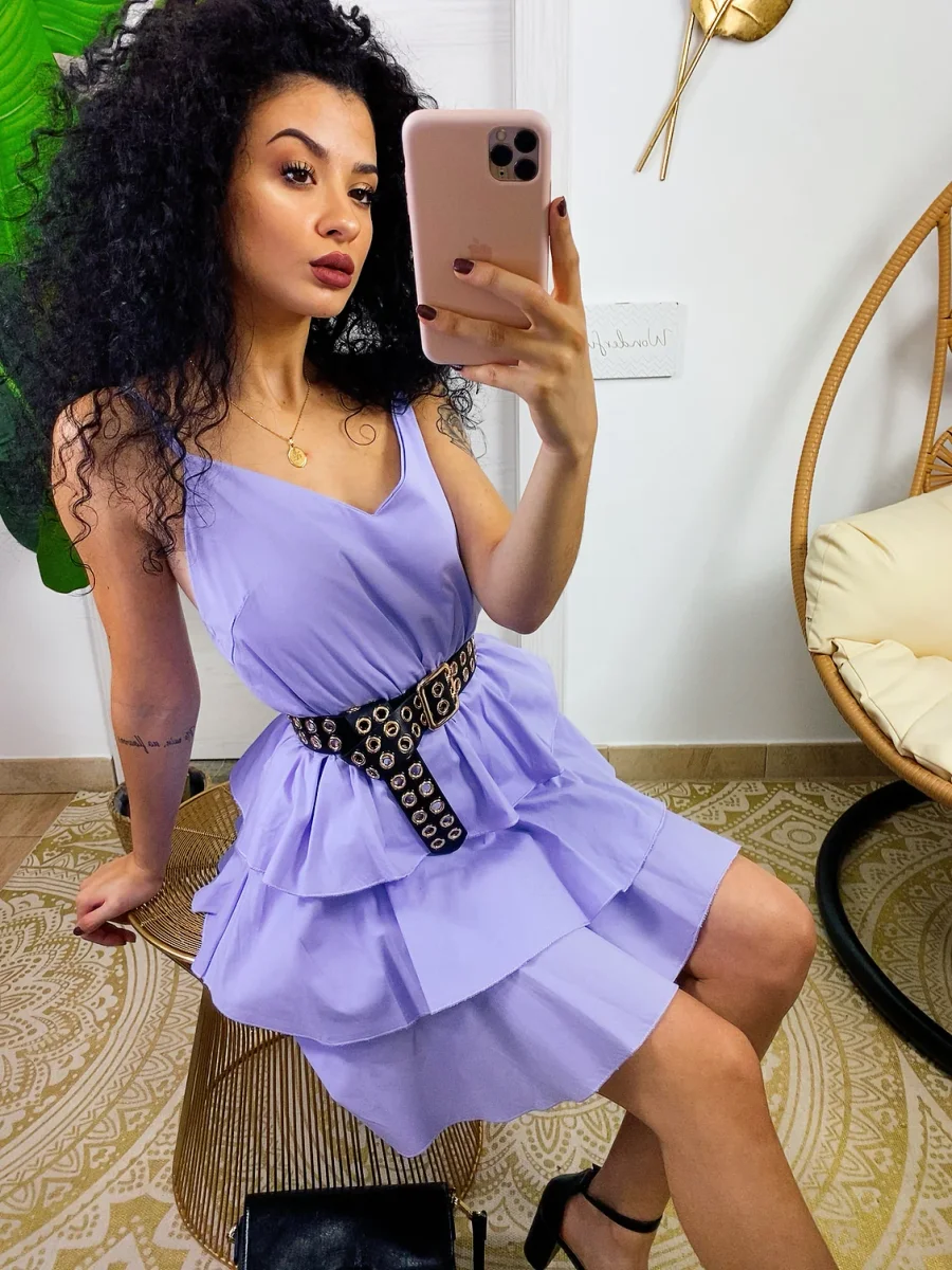 Abito a balze in cotone a bretellina. Elasticizzato sul petto perciò adattabile a tutte le taglie.