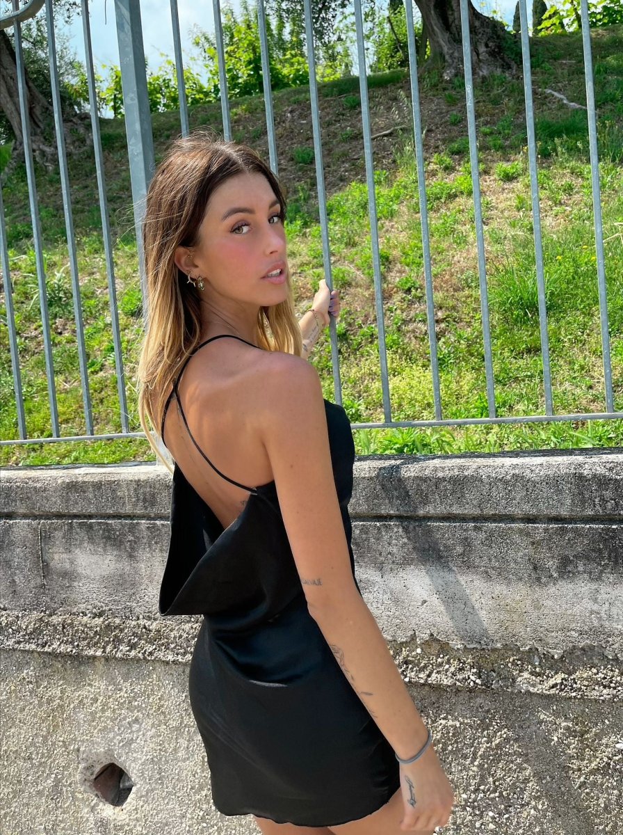 Abito a bretellina nero, semplice estivo ed elasticizzato.