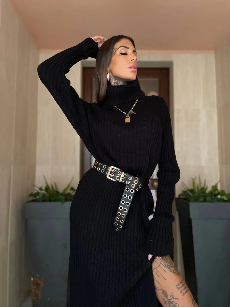 Abito a collo alto lungo con spacco