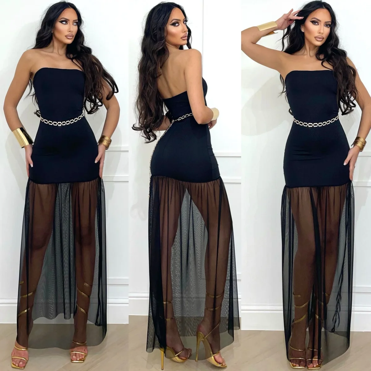 Abito a fascia con gonna in tulle nero