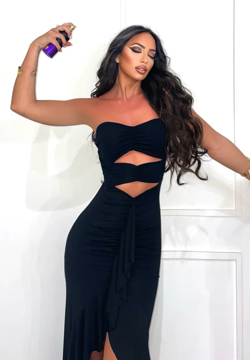 Abiti a fascia in tessuto lycra aderente e elasticizzato con coppe. Spacco sul davanti e rouches