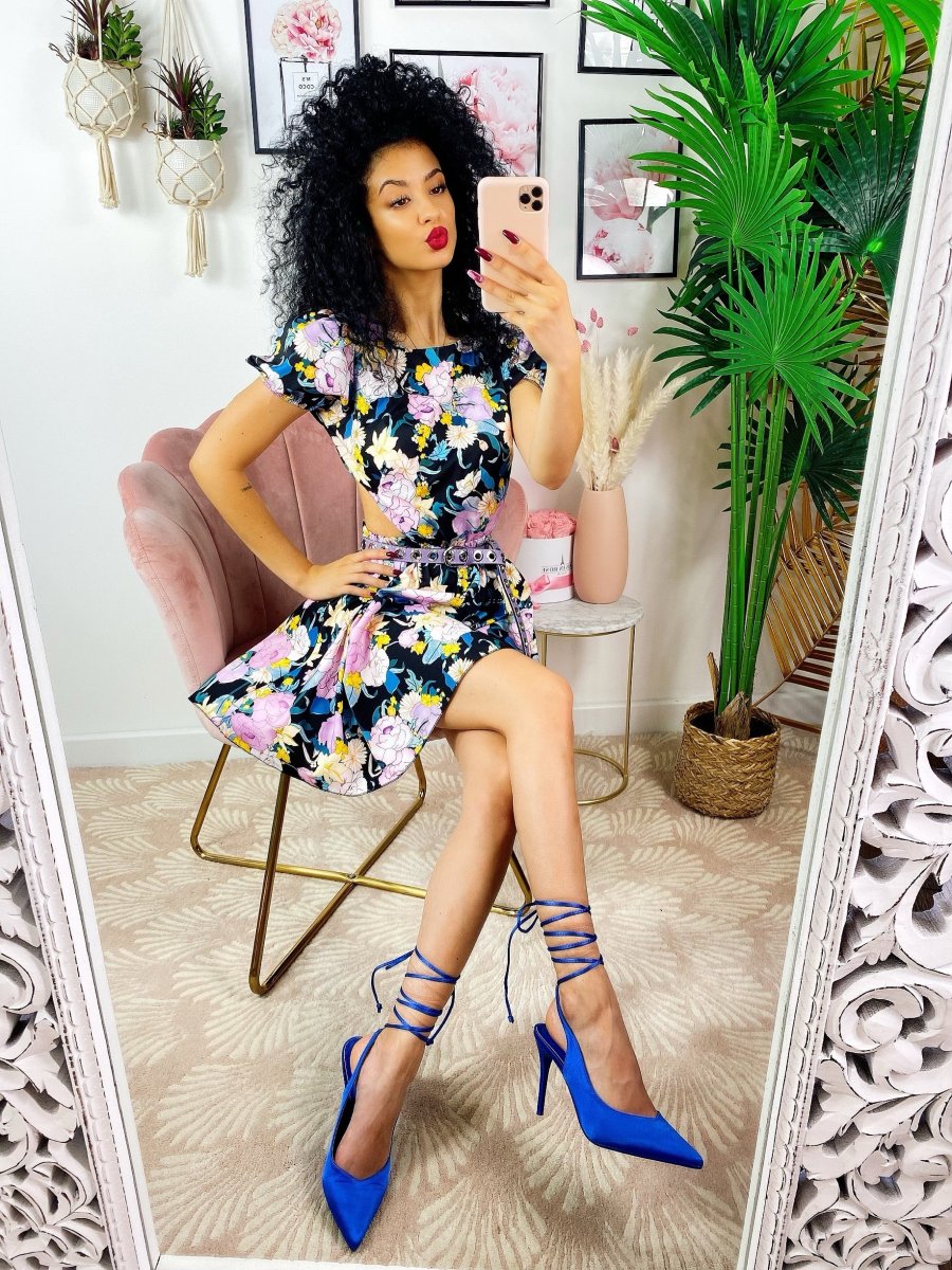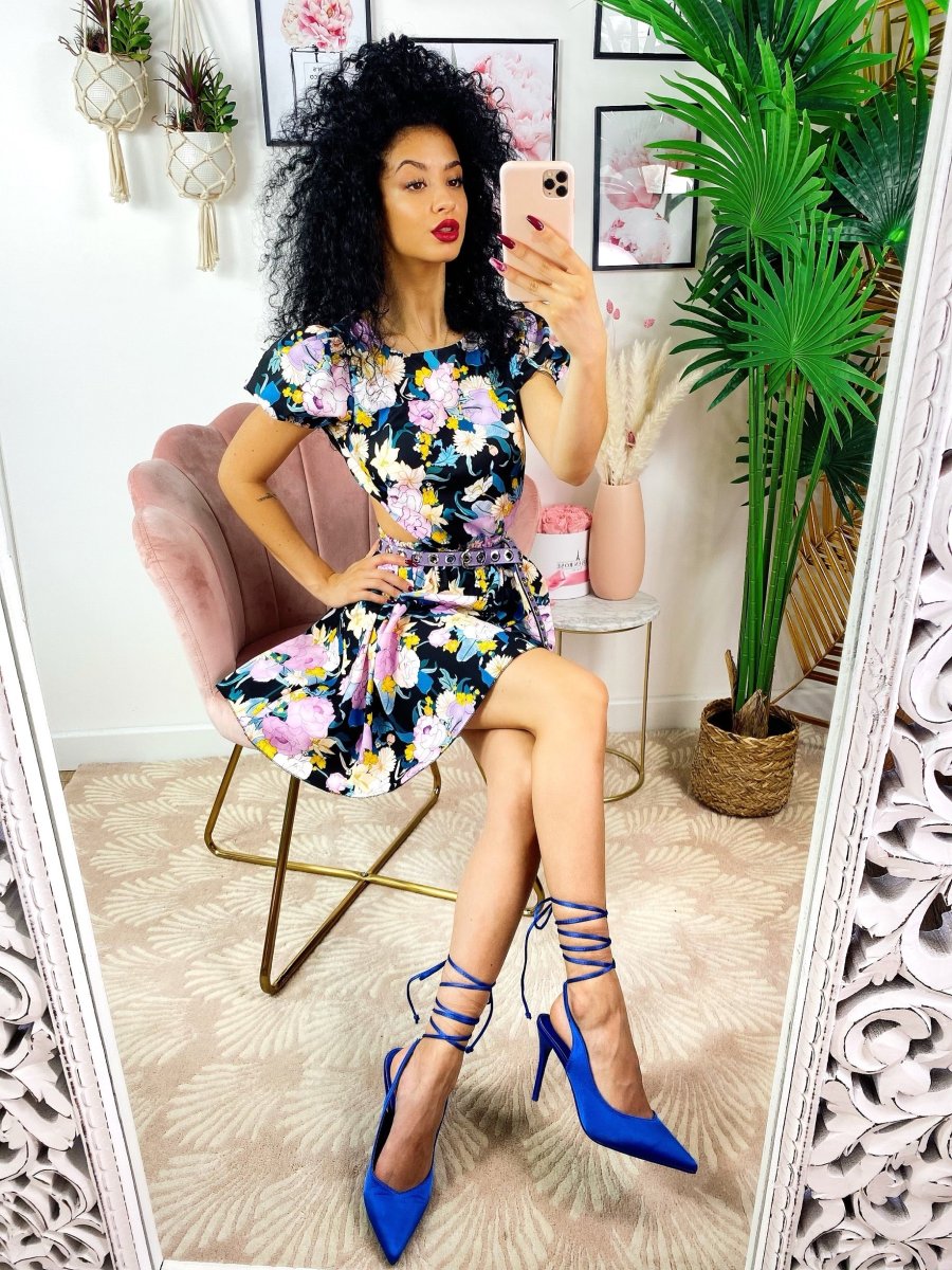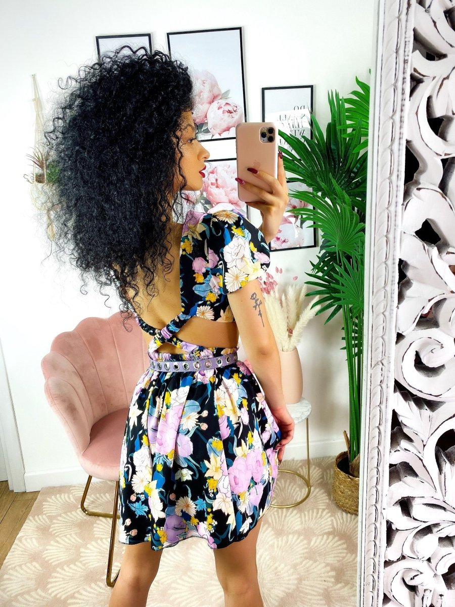 Abito a fiori lilla schiena aperta Con bretelline elasticizzate, fisse e incrociabili. Compreso di coppe