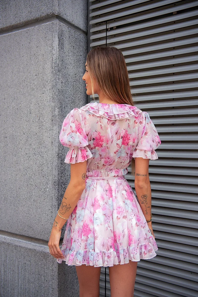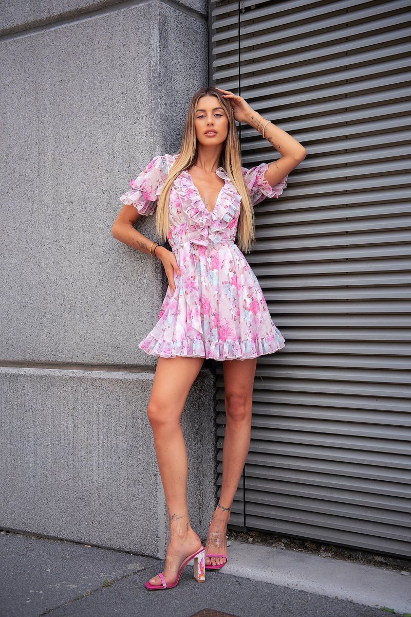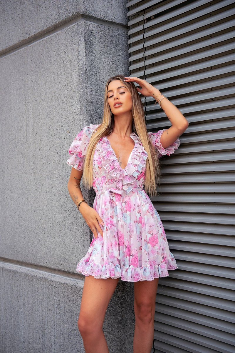 Morbido abito in tessuto leggero con fodera, fantasia floreale con maxi gonna e cintura . Vestibilità molto morbida