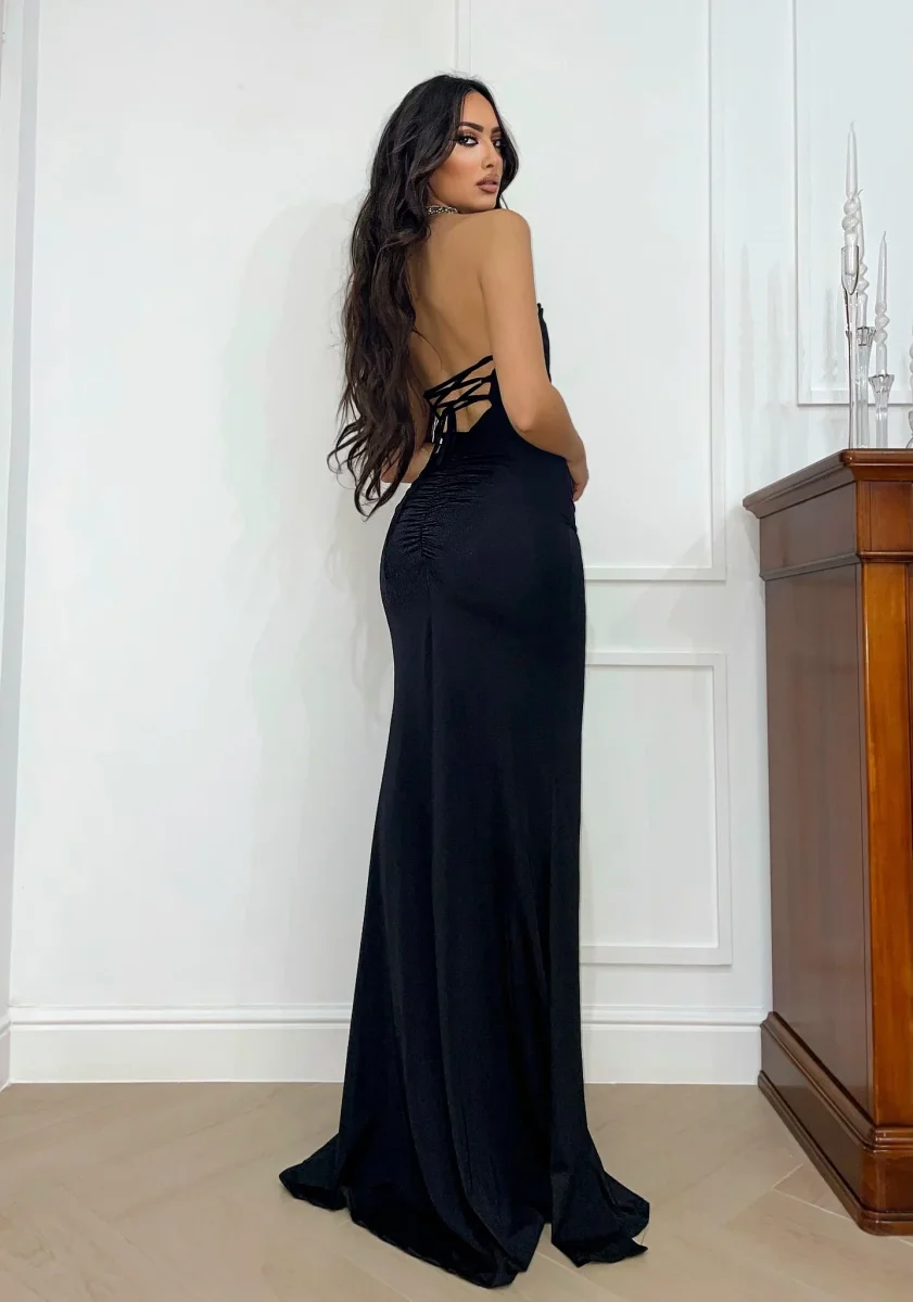 Abito a sirena con push up e incrocio nero