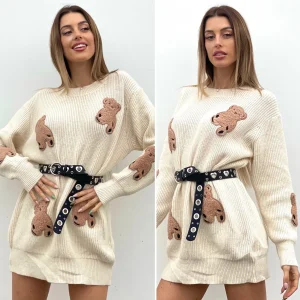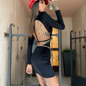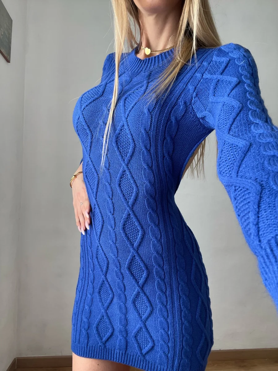 Abito in maglia con trama a trecce a manica lunga, tessuto medio spessore. Maxi apertura sulla schiena sexy e seducente .