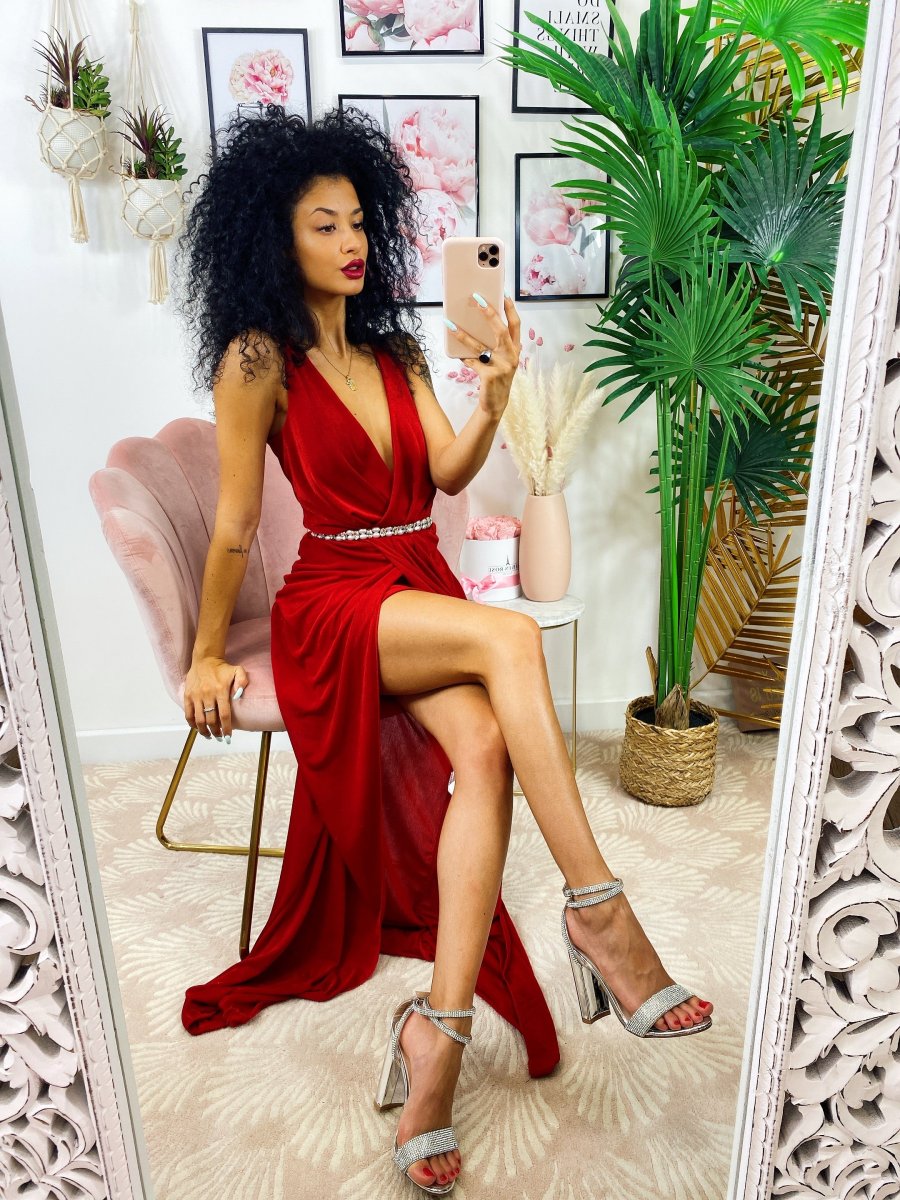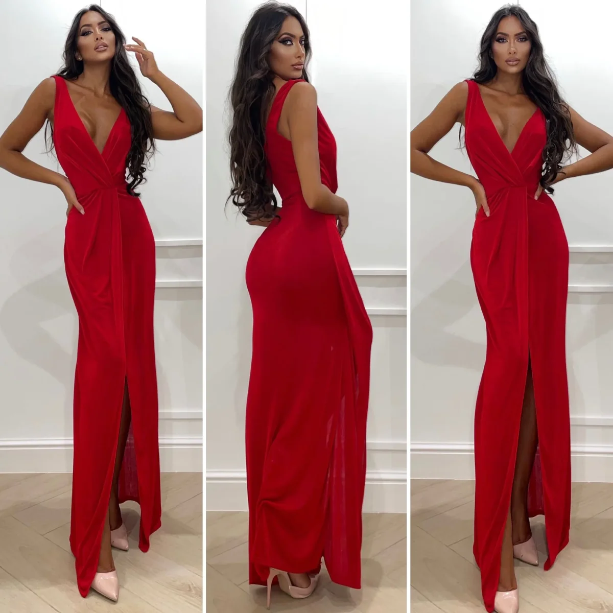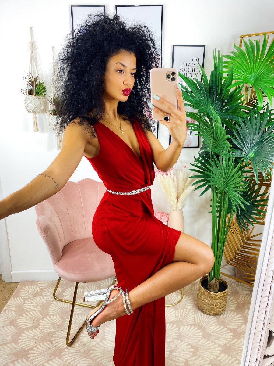 Recensisci per primo “Abito aderente con scollo a V e spacco rosso”