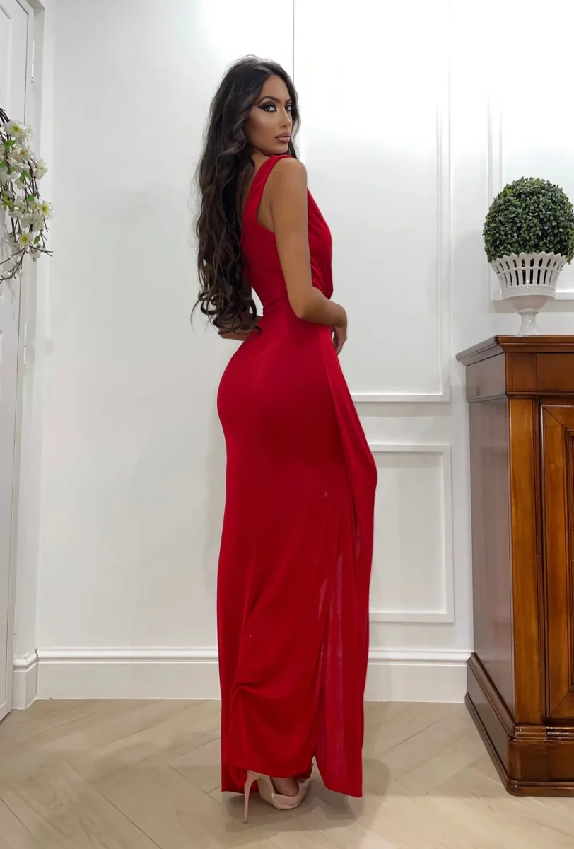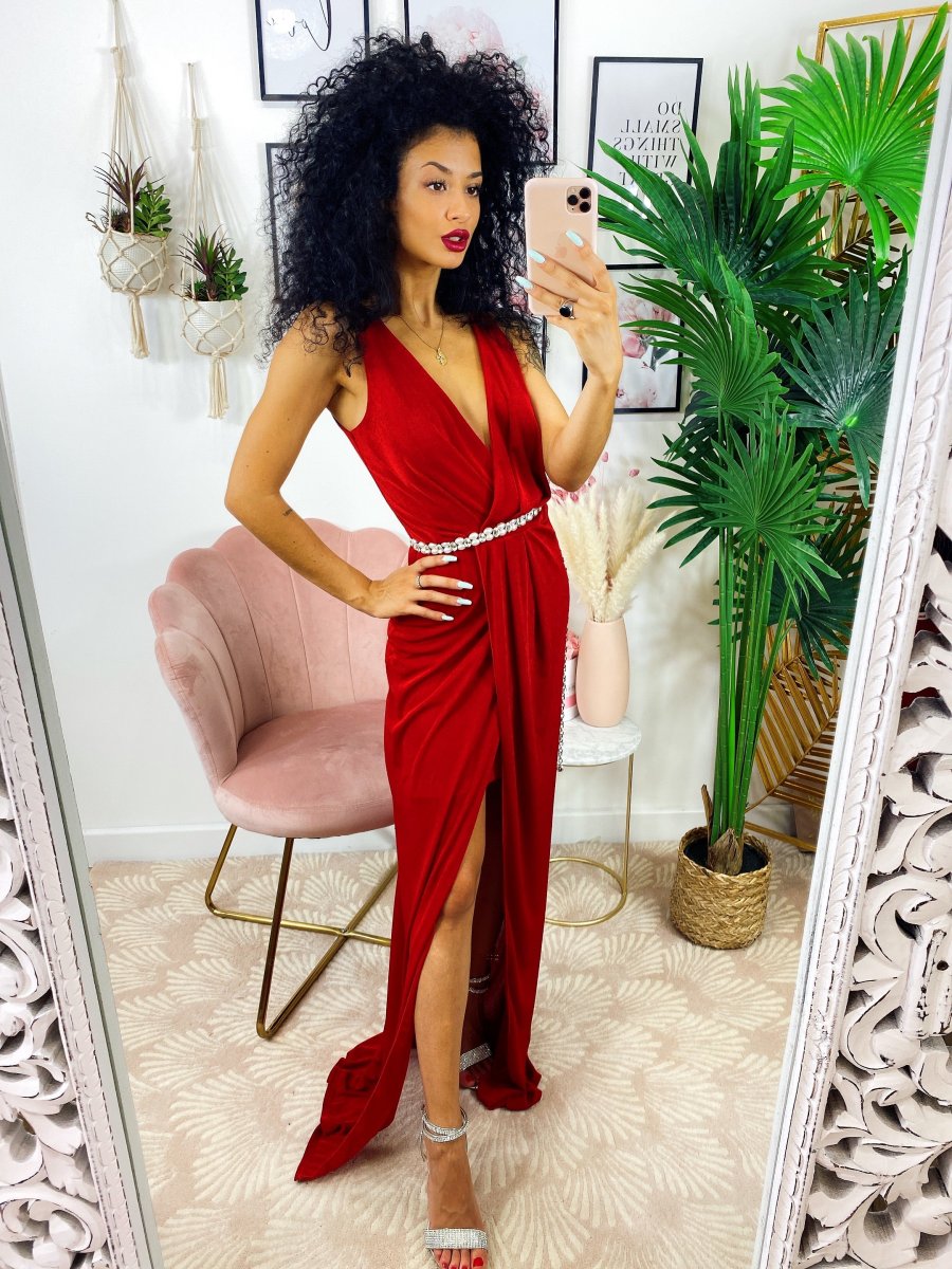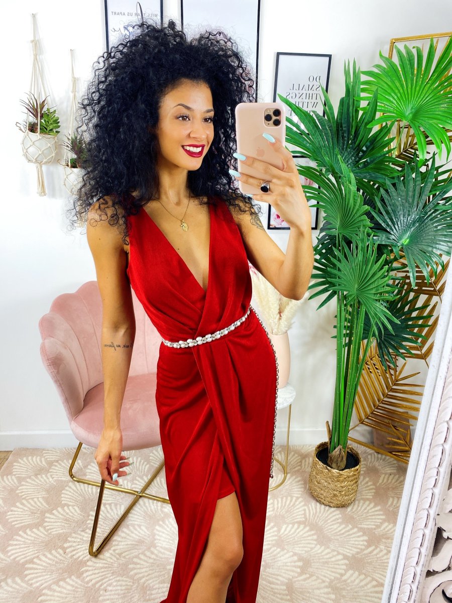 Recensisci per primo “Abito aderente con scollo a V e spacco rosso”