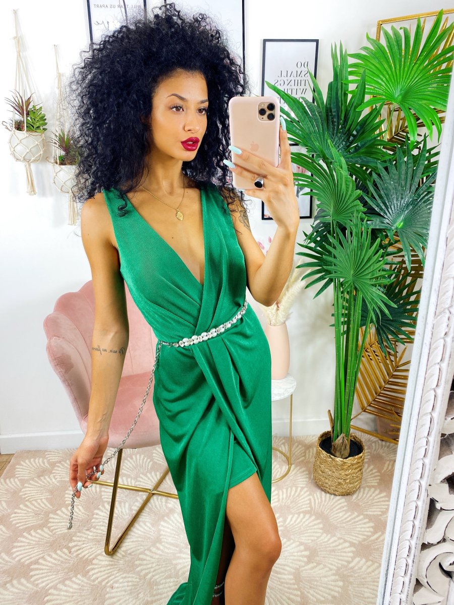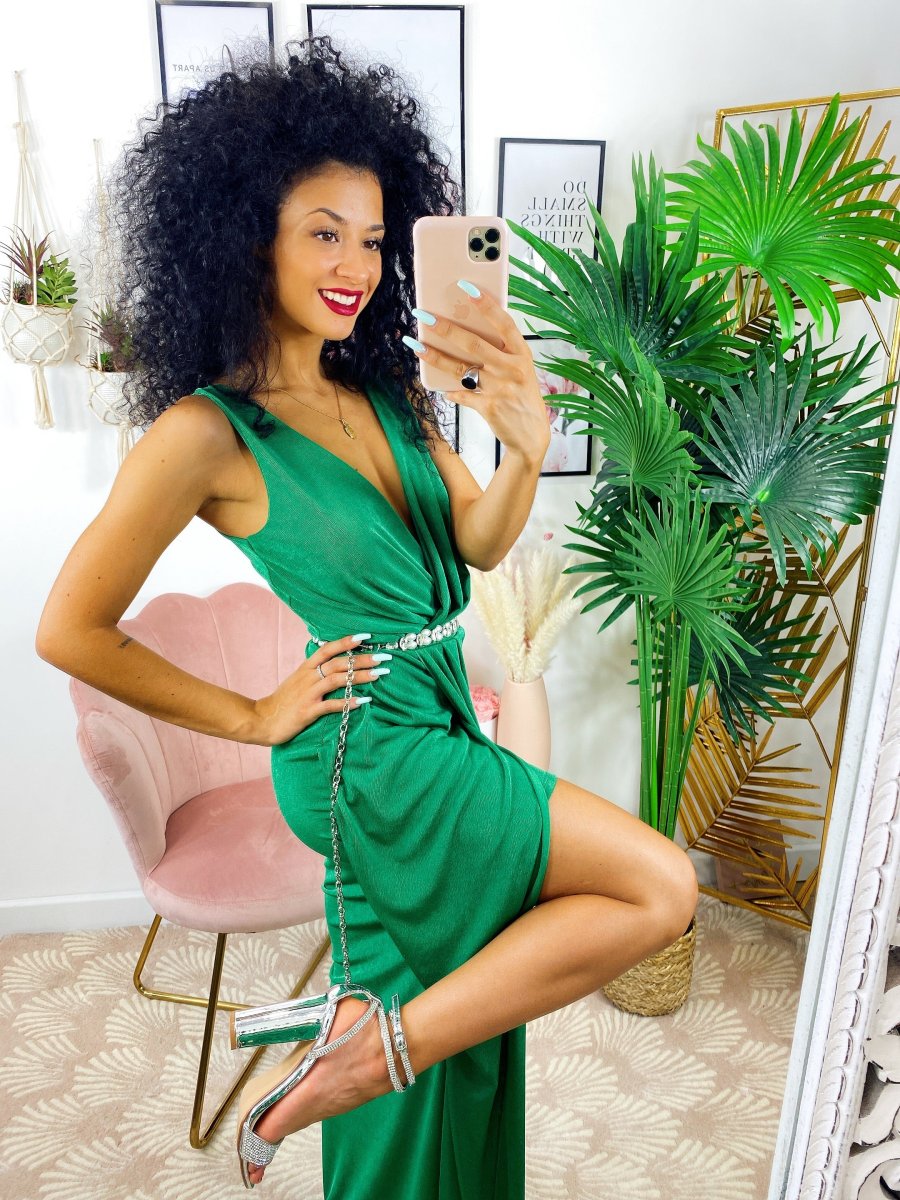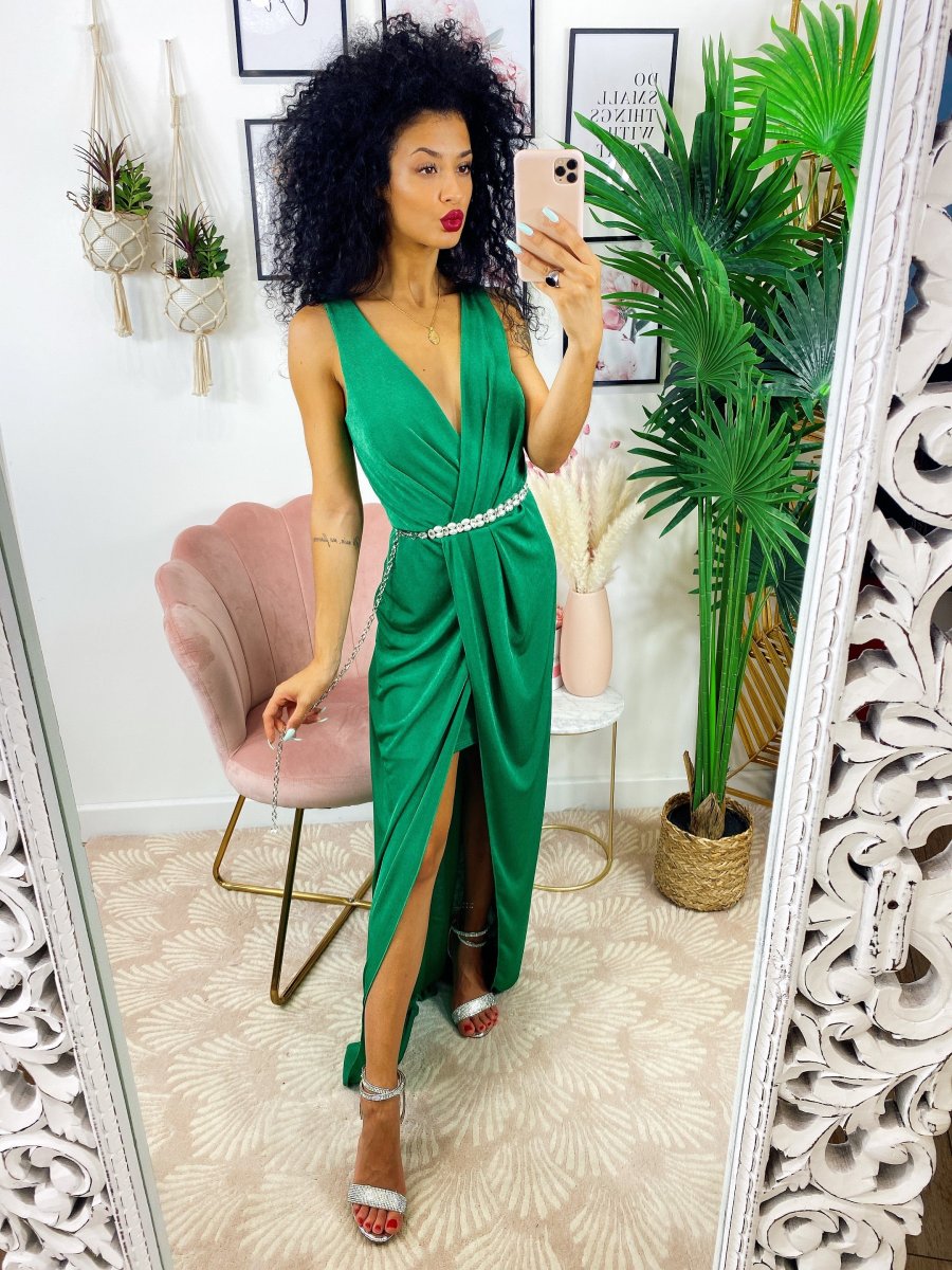 Recensisci per primo “Abito aderente con scollo a V e spacco verde”