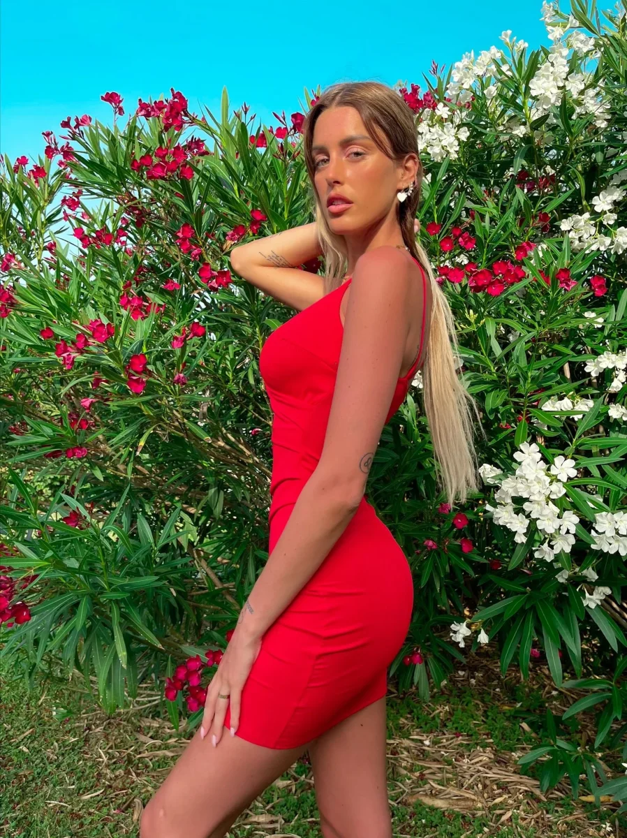 Abito aderente elasticizzato. Bretelline sottili e incrocio sul davanti con coppe