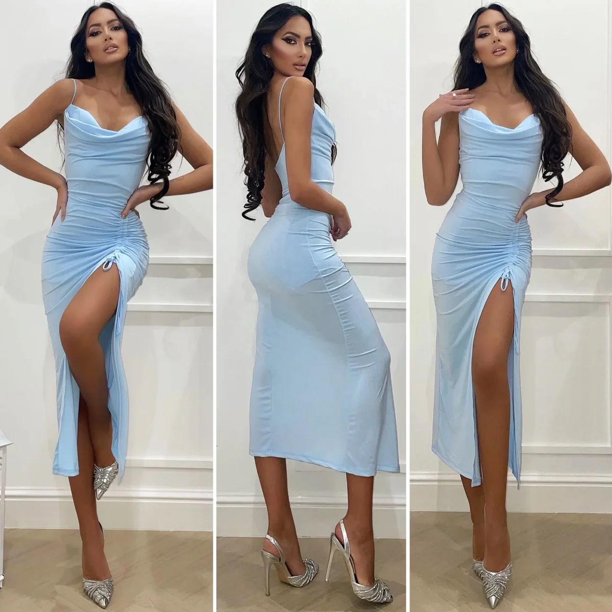 Abito in tessuto elasticizzato aderente con coppe e drappeggio laterale