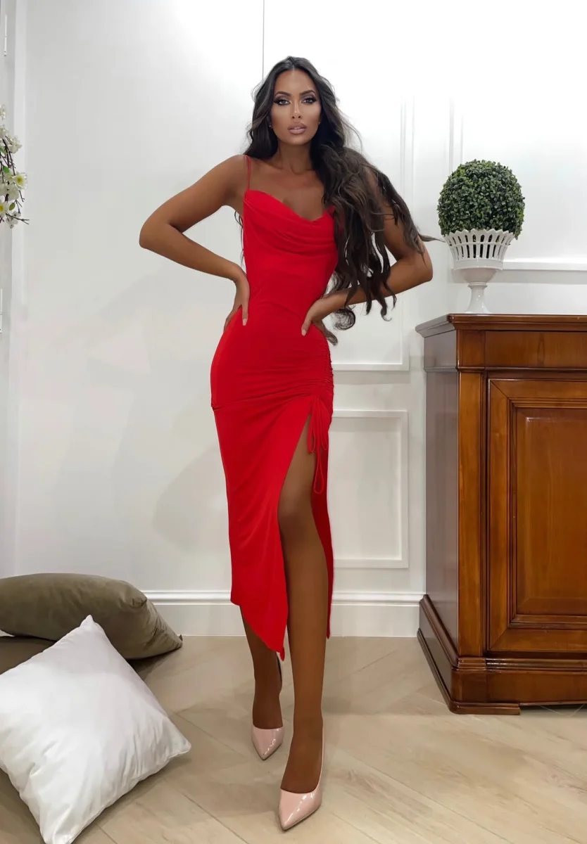 Abito in tessuto elasticizzato aderente con coppe e drappeggio laterale