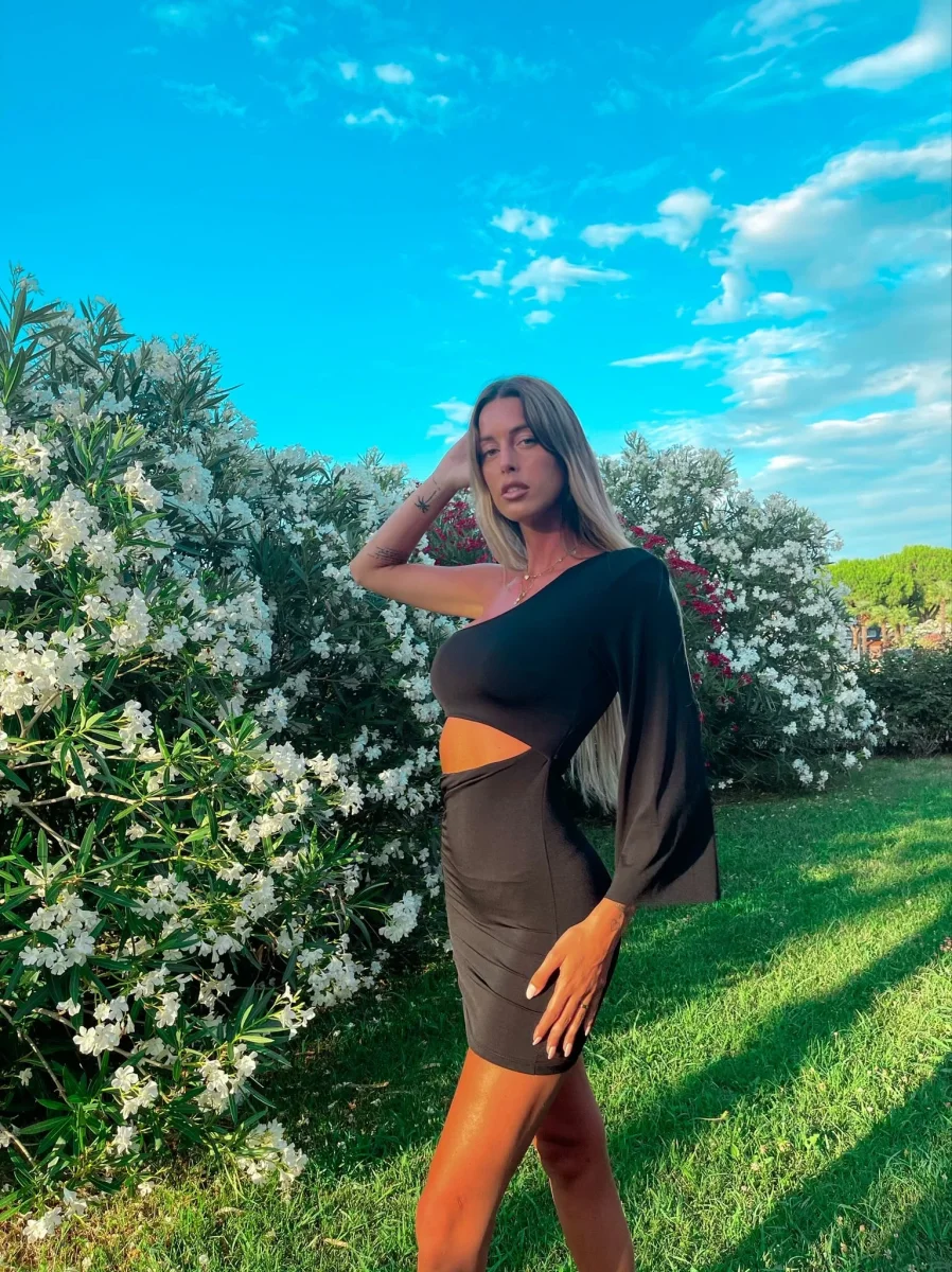 Abito aderente monospalla. Maxi obló sulla pancia.