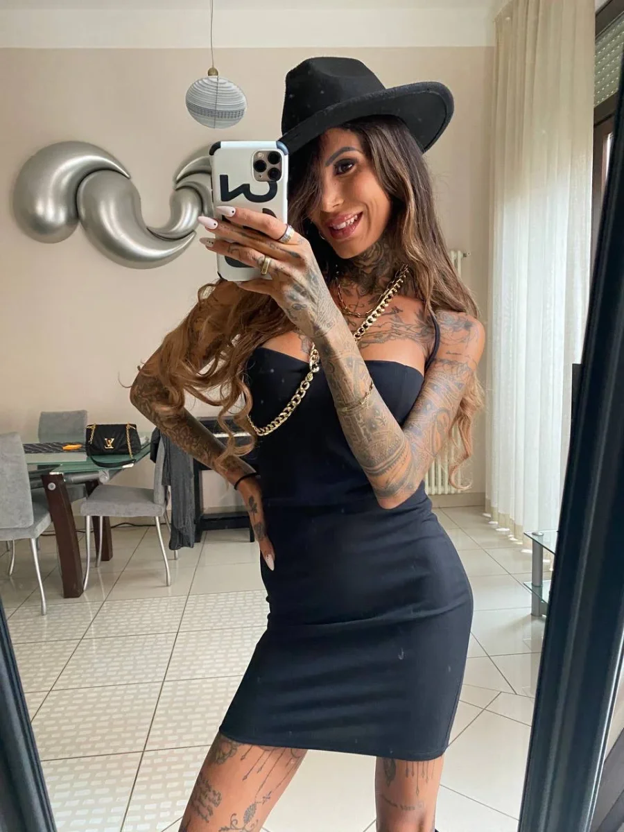 Abito aderente con coppe e chiusura con zip, dettaglio catena oro