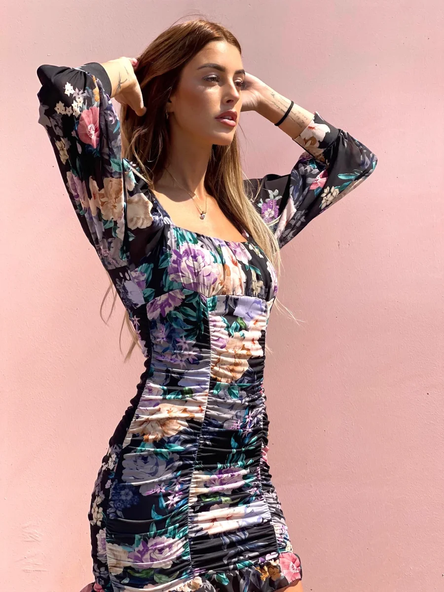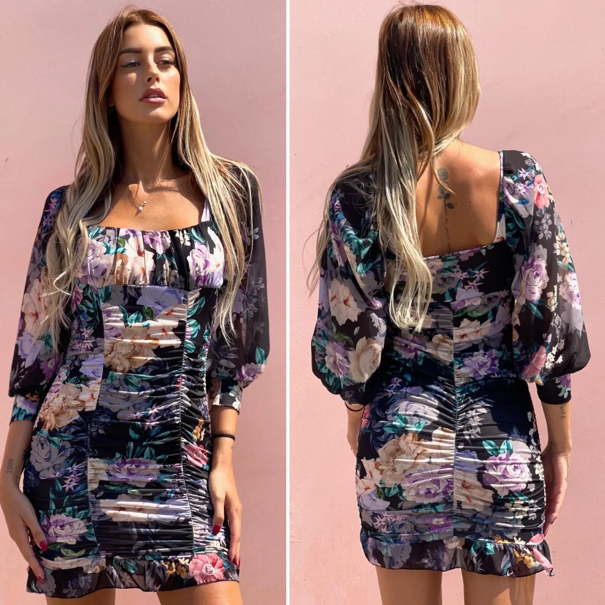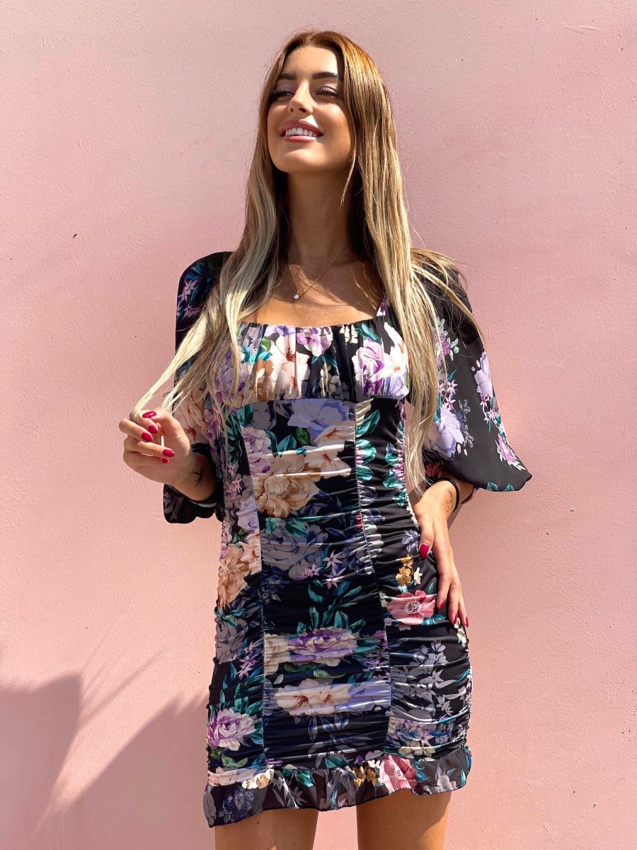 Recensisci per primo “Abito arricciato nero con fiori rosa”