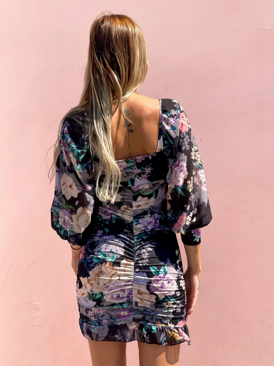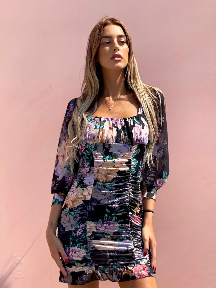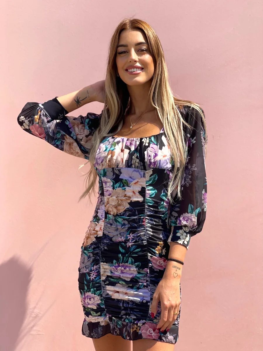 Recensisci per primo “Abito arricciato nero con fiori rosa”