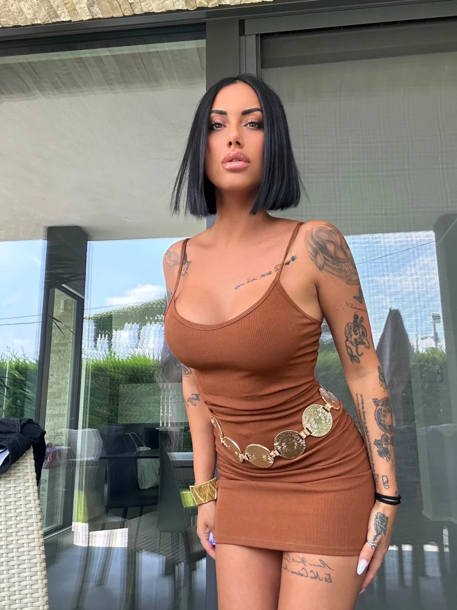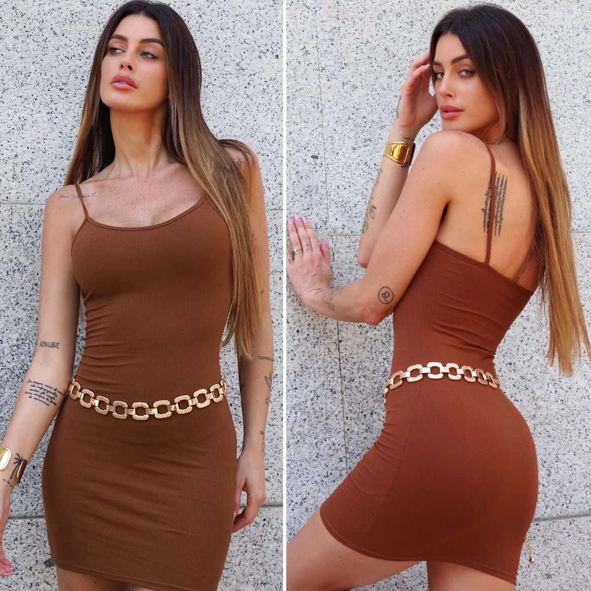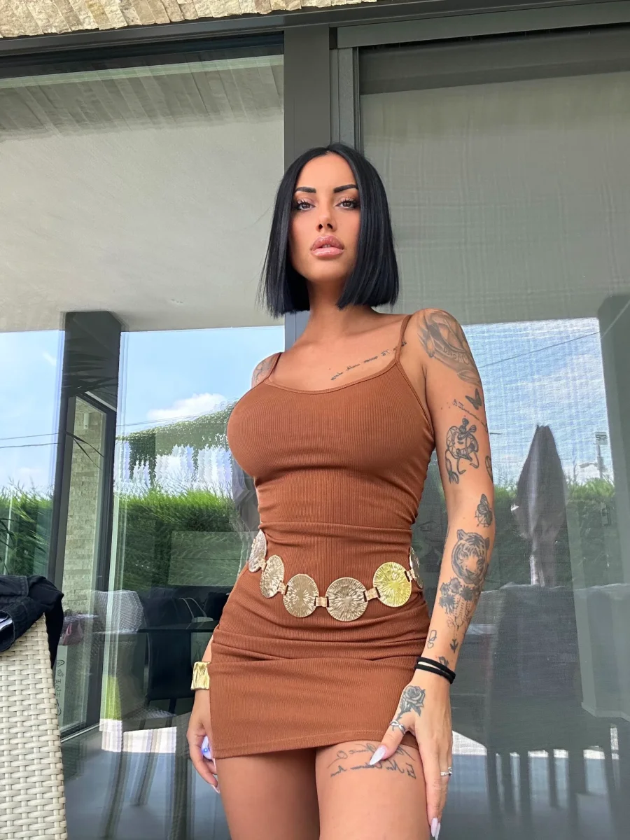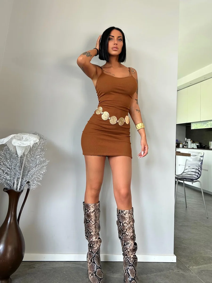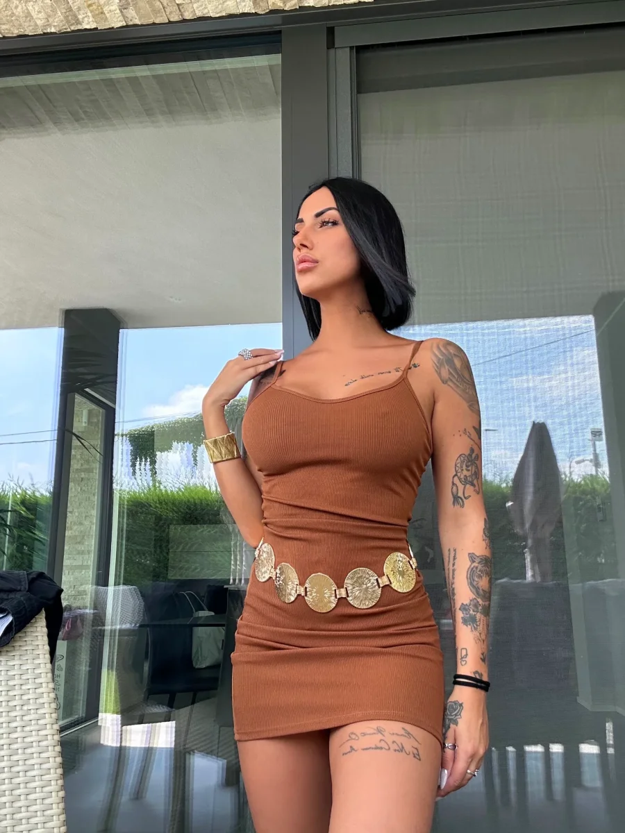 Abito basico a bretellina a costine. Tessuto molto elasticizzato comodo.