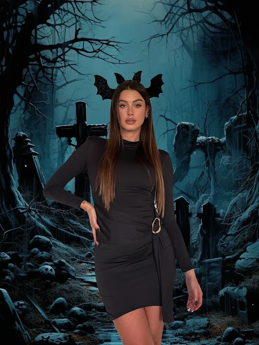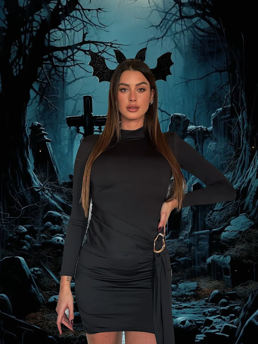 Abito in lycra manica lunga con gioiello sul davanti e schiena aperta