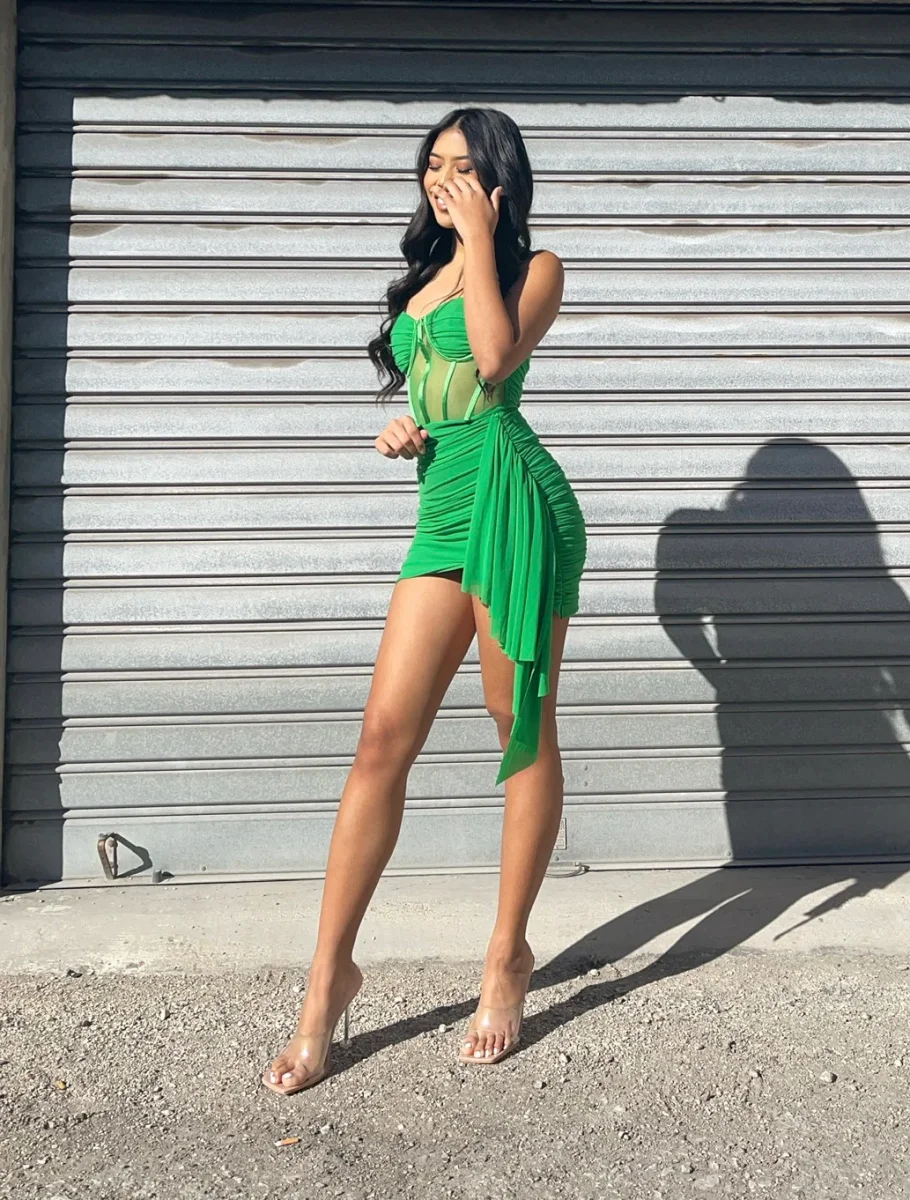 Abito di altissima qualità composto da bustino con stecche e coppe con spalline regolabili. Gonna in velo con fusciacca. Abito foderato. Effetto push up nel dietro