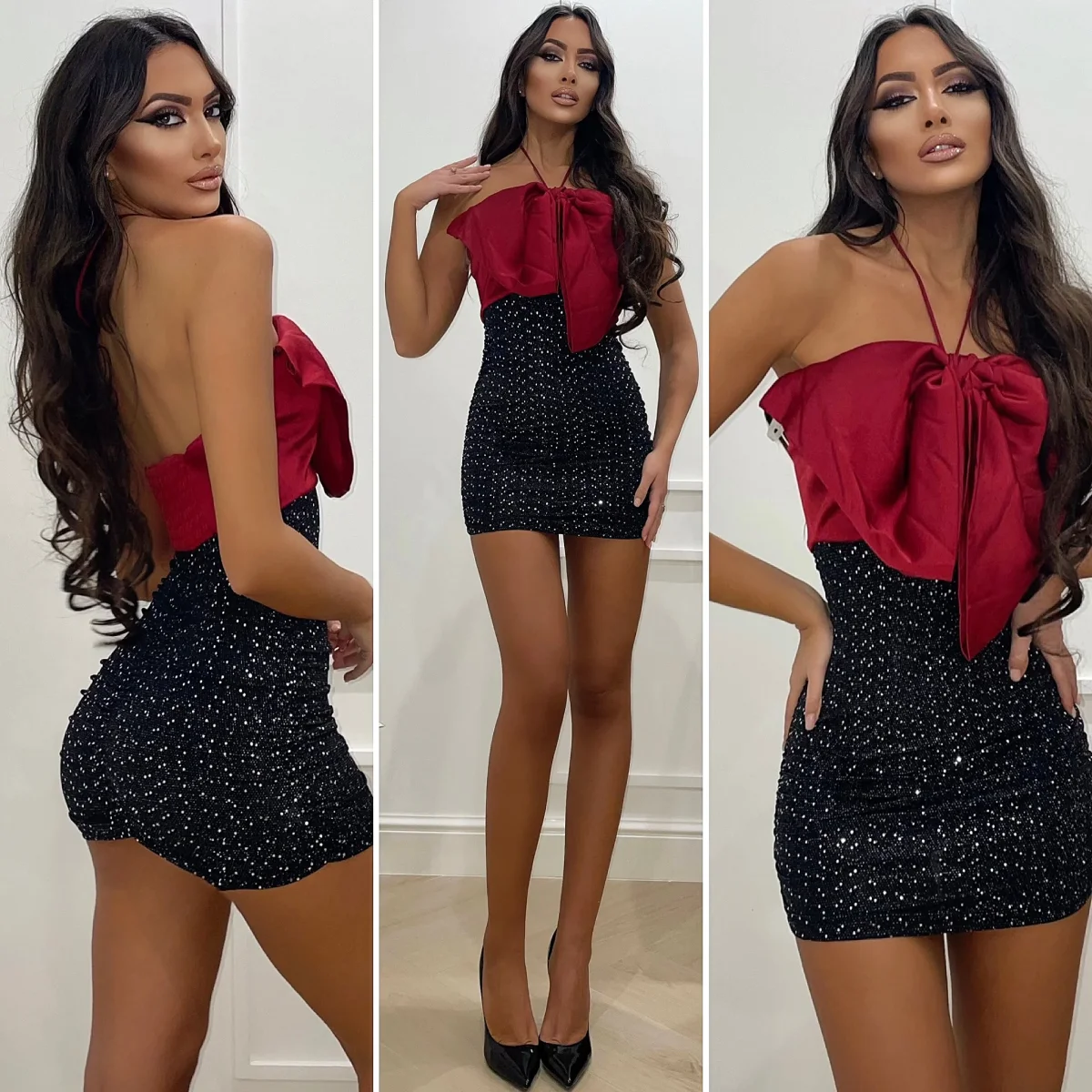 Recensisci per primo “Abito con maxi fiocco e gonna in paillettes bordeaux”
