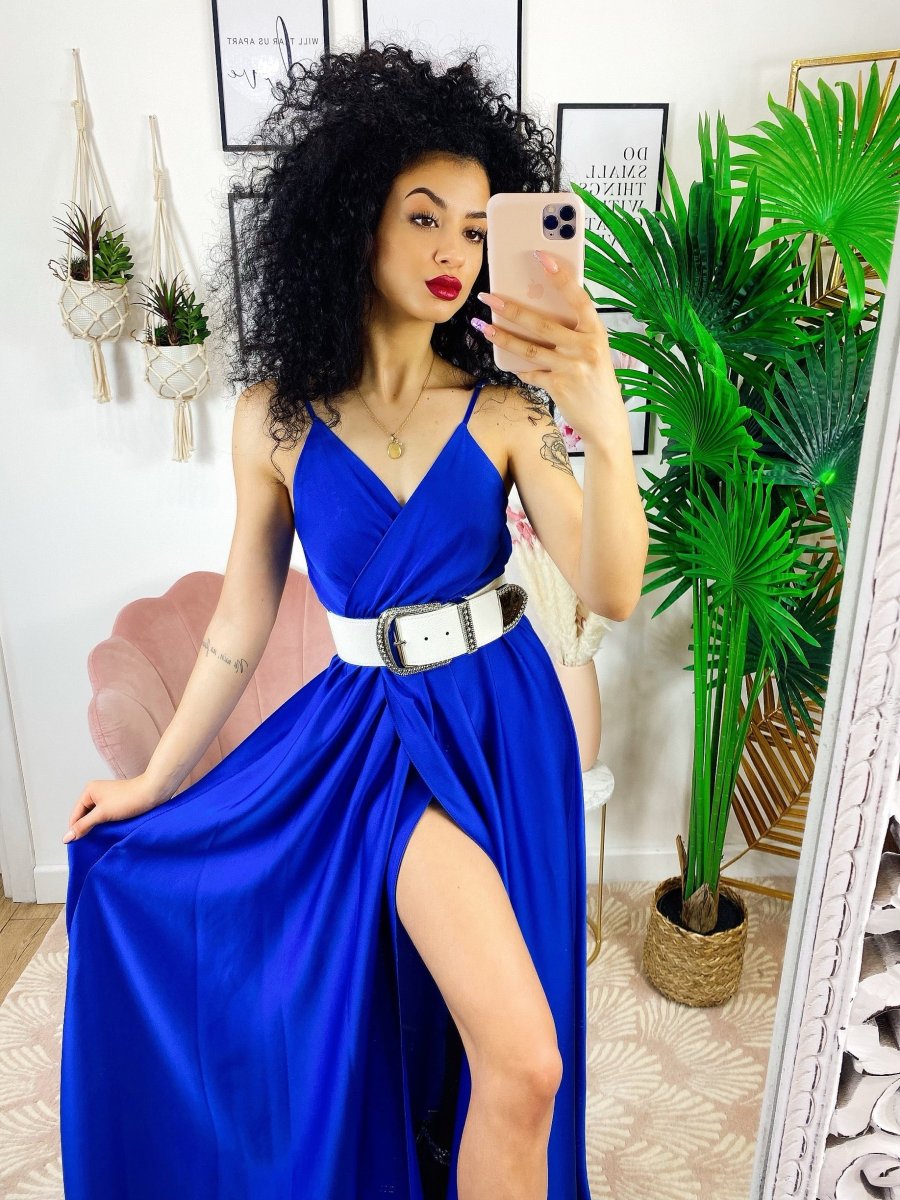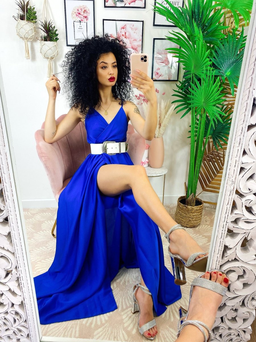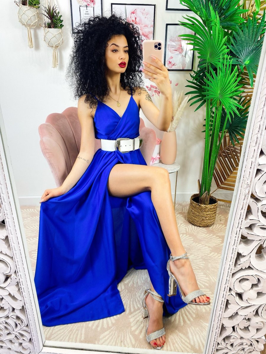 Abito con maxi spacco blu di alta qualità. Fantastico abito molto lungo da indossare con un bel tacco per le serate più glamour. Tira fuori la tua sensualità e voglia di essere donna, sarai la più amata della serata !!