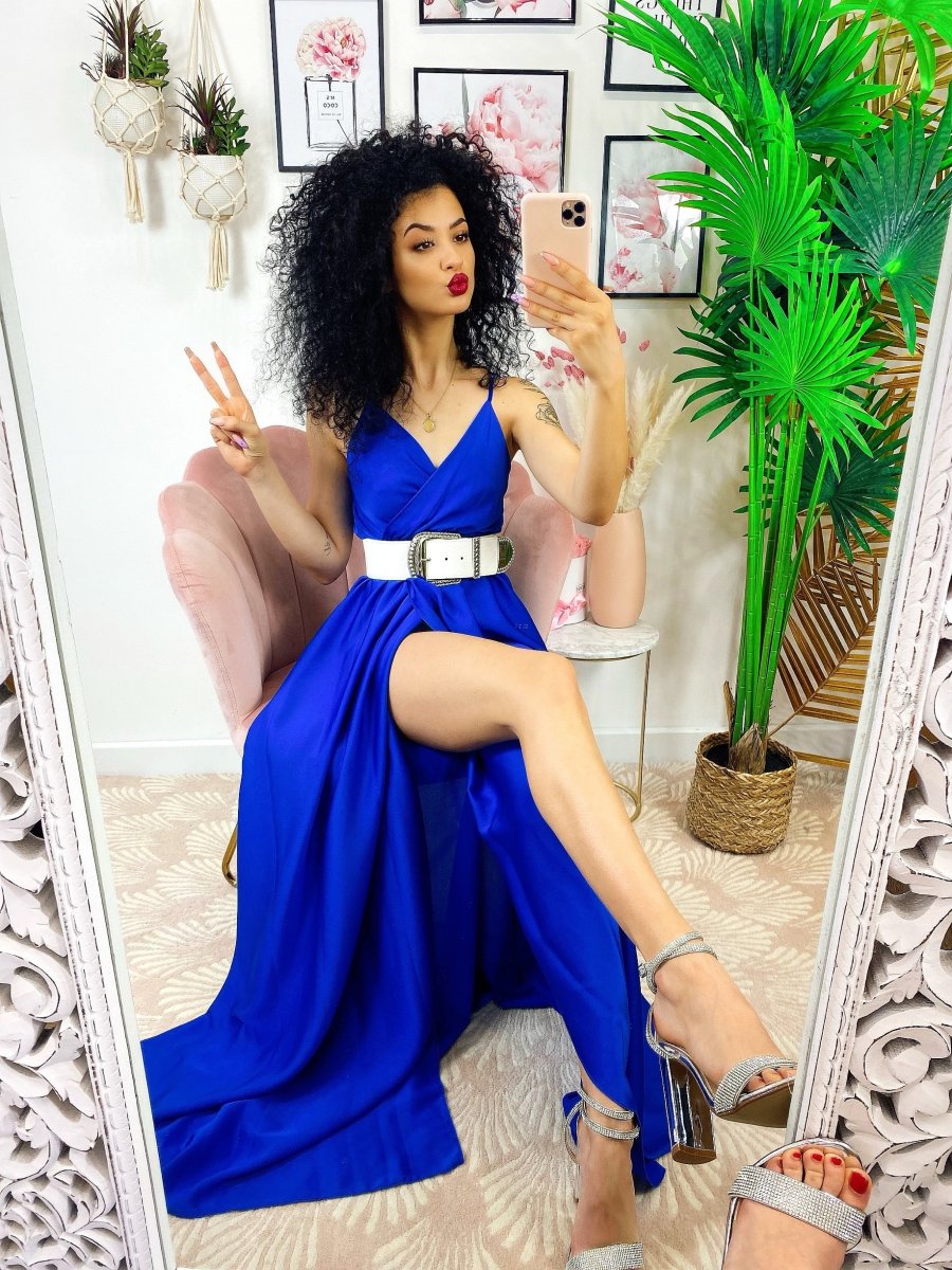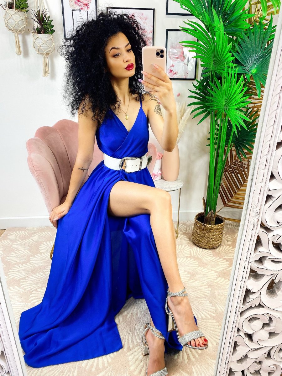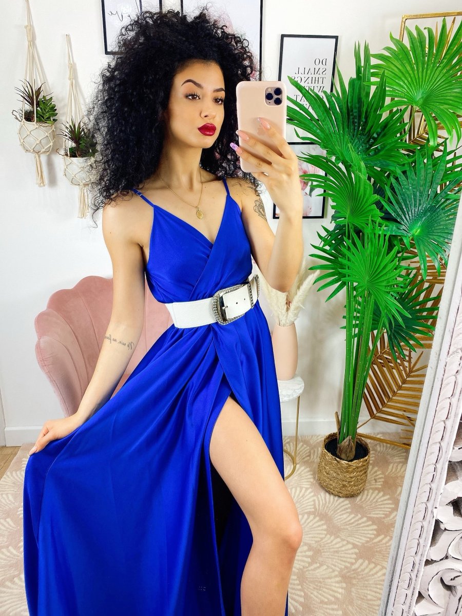 Abito con maxi spacco blu di alta qualità. Fantastico abito molto lungo da indossare con un bel tacco per le serate più glamour. Tira fuori la tua sensualità e voglia di essere donna, sarai la più amata della serata !!