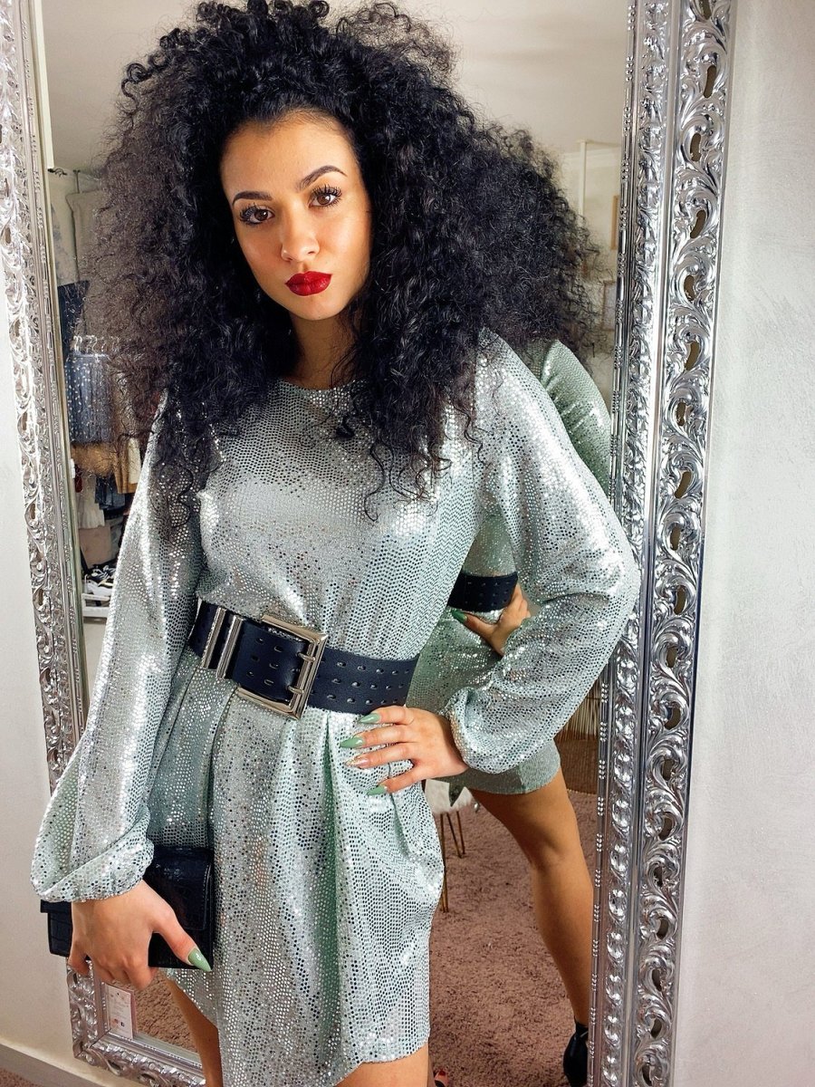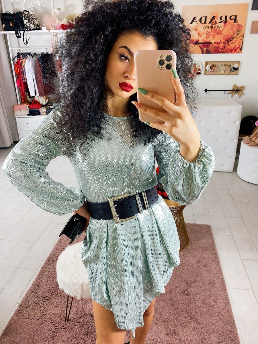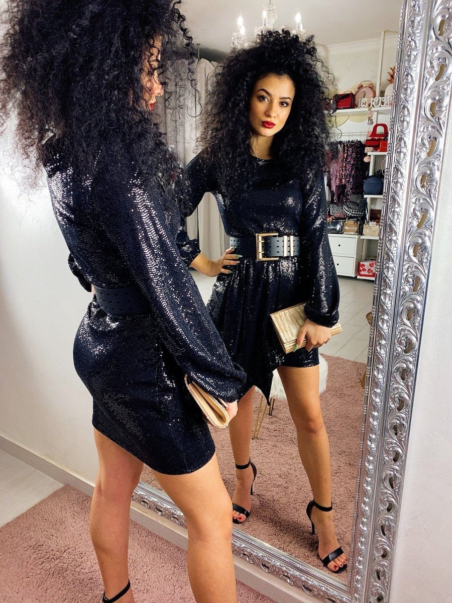 Abito in tessuto elasticizzato con chiusura con bottoncini dietro al collo. Particolare taglio e tessuto
