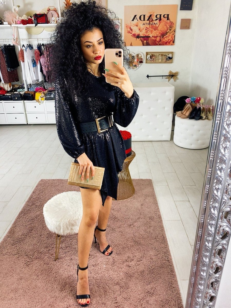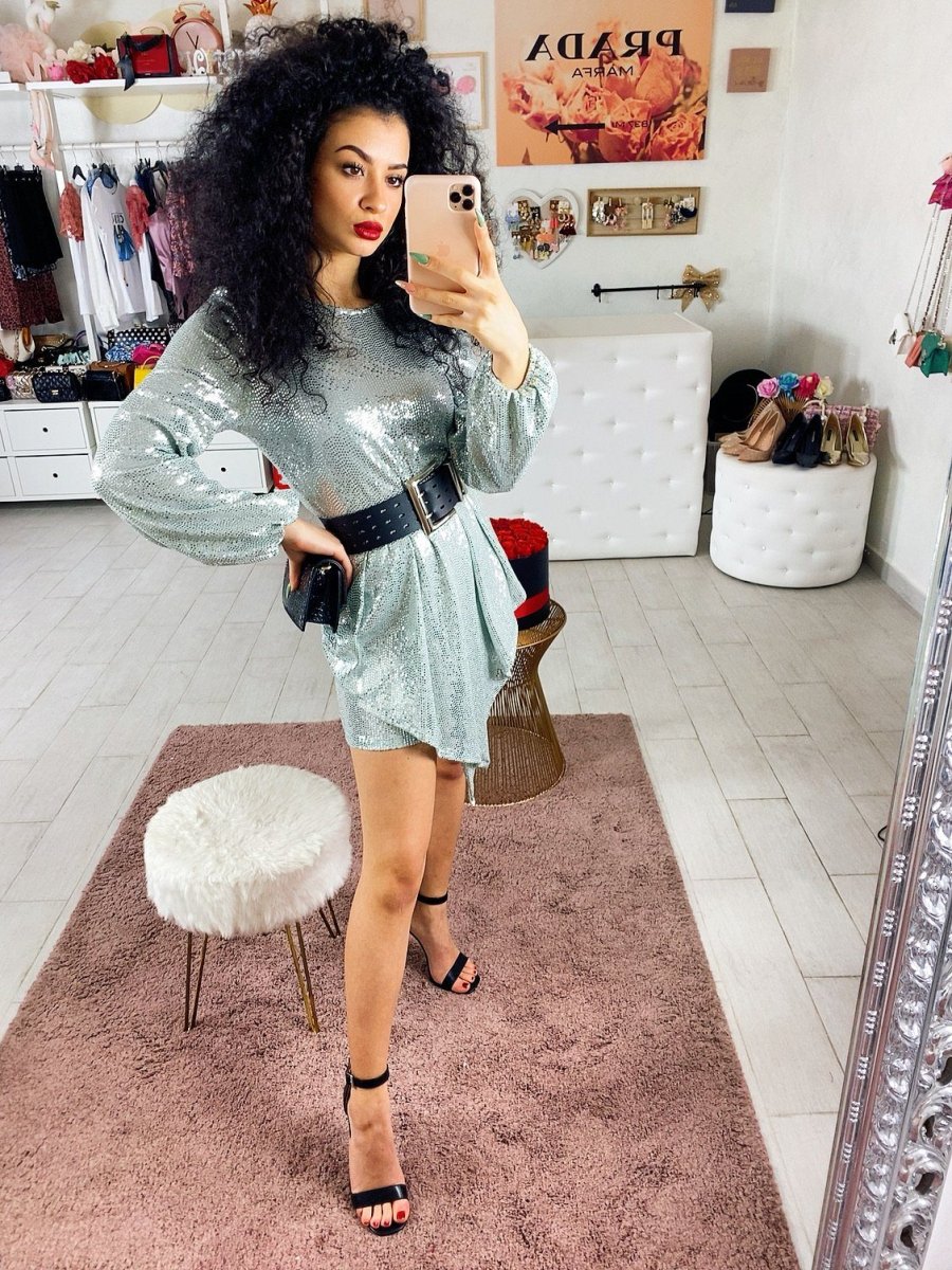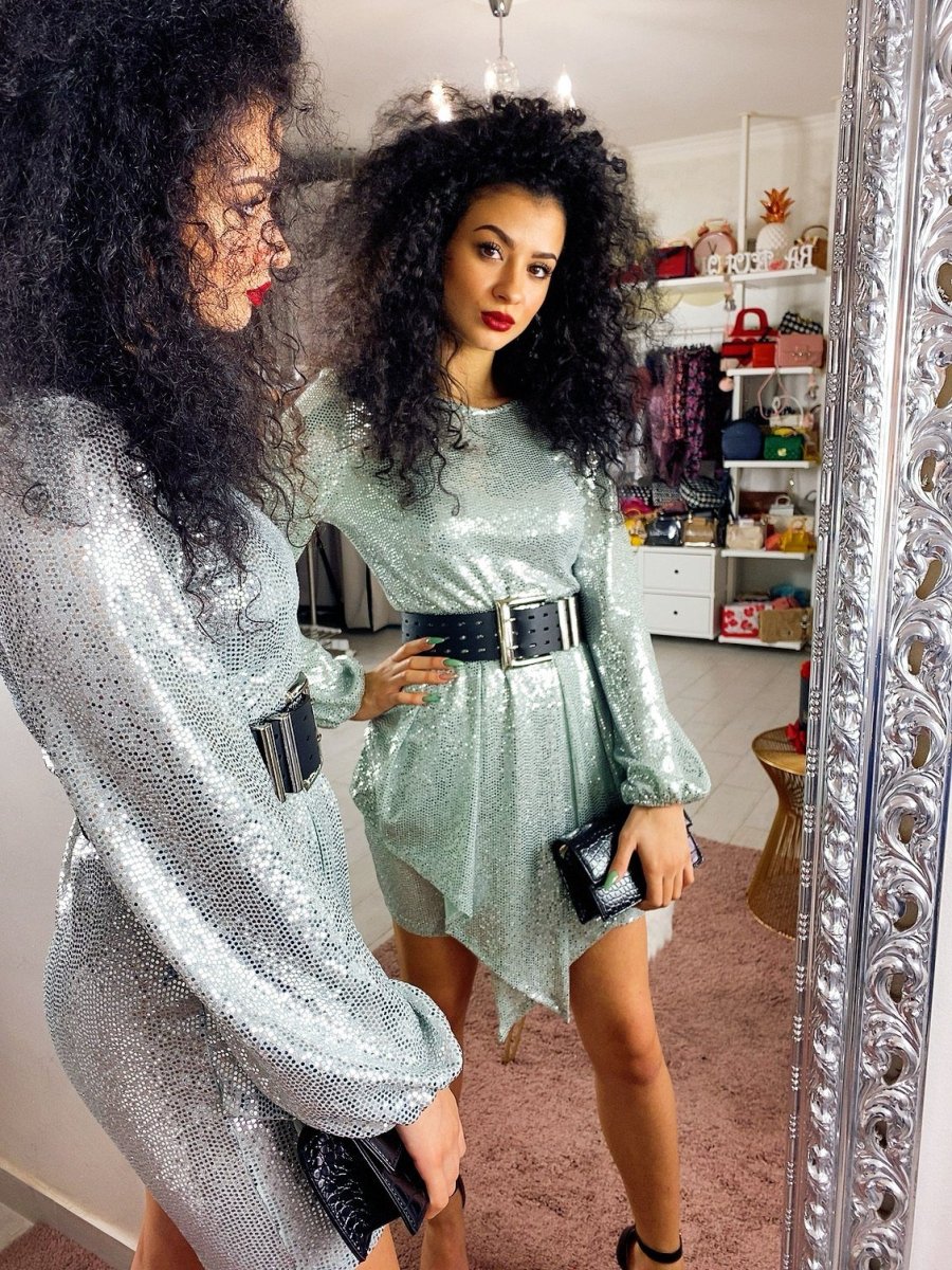 Abito in tessuto elasticizzato con chiusura con bottoncini dietro al collo. Particolare taglio e tessuto