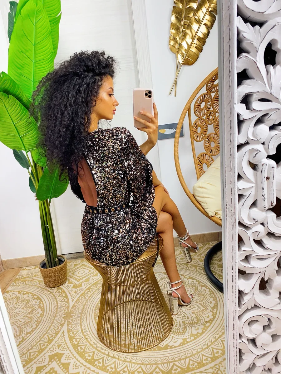 Tubino aderente con fodera. Schiena aperta con una maxi goccia. Manichina a 3/4