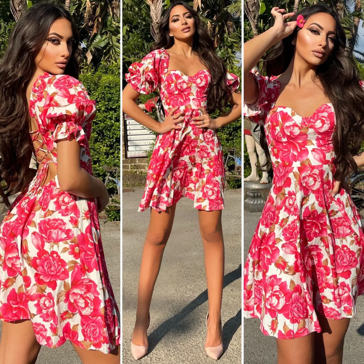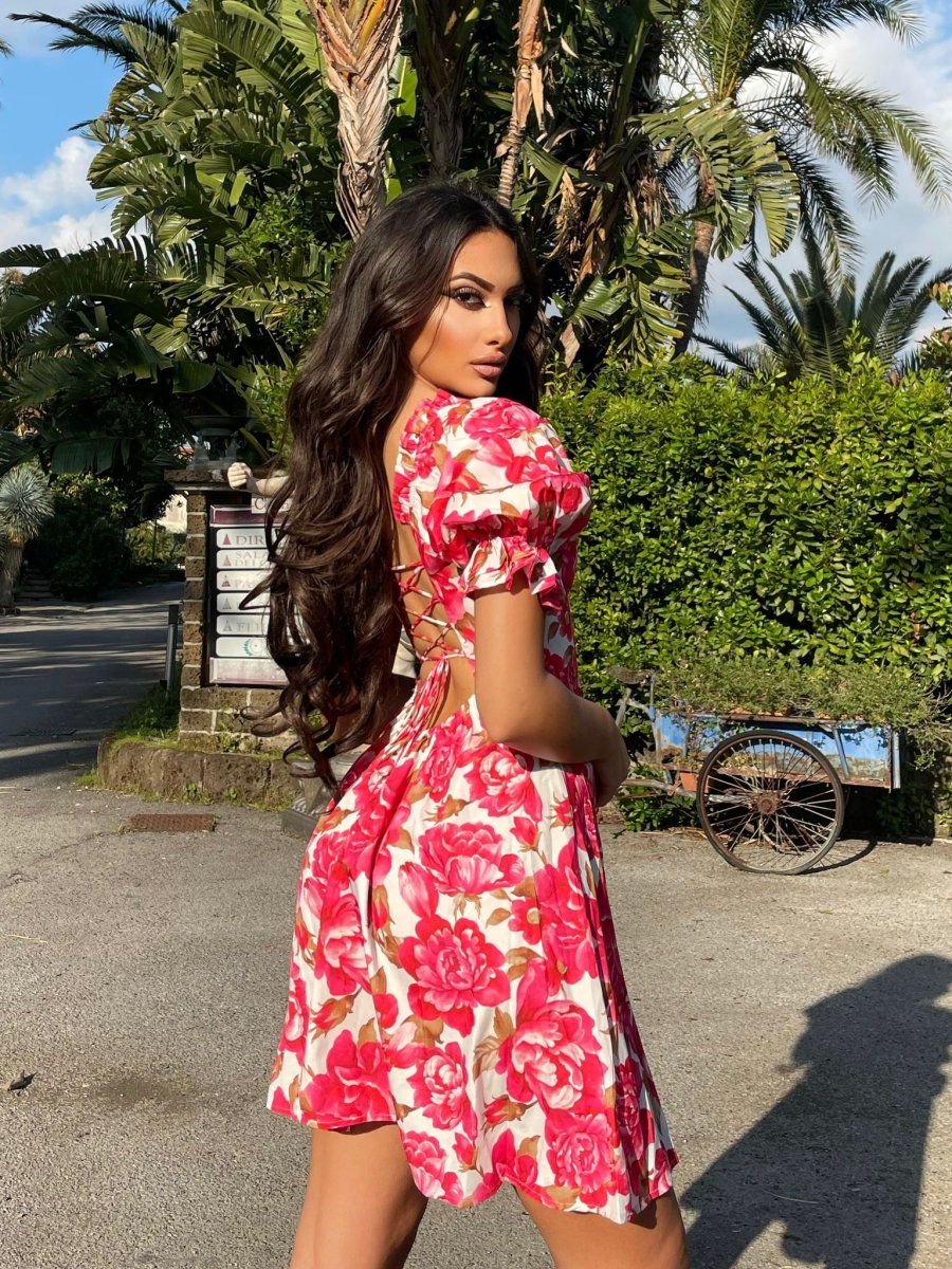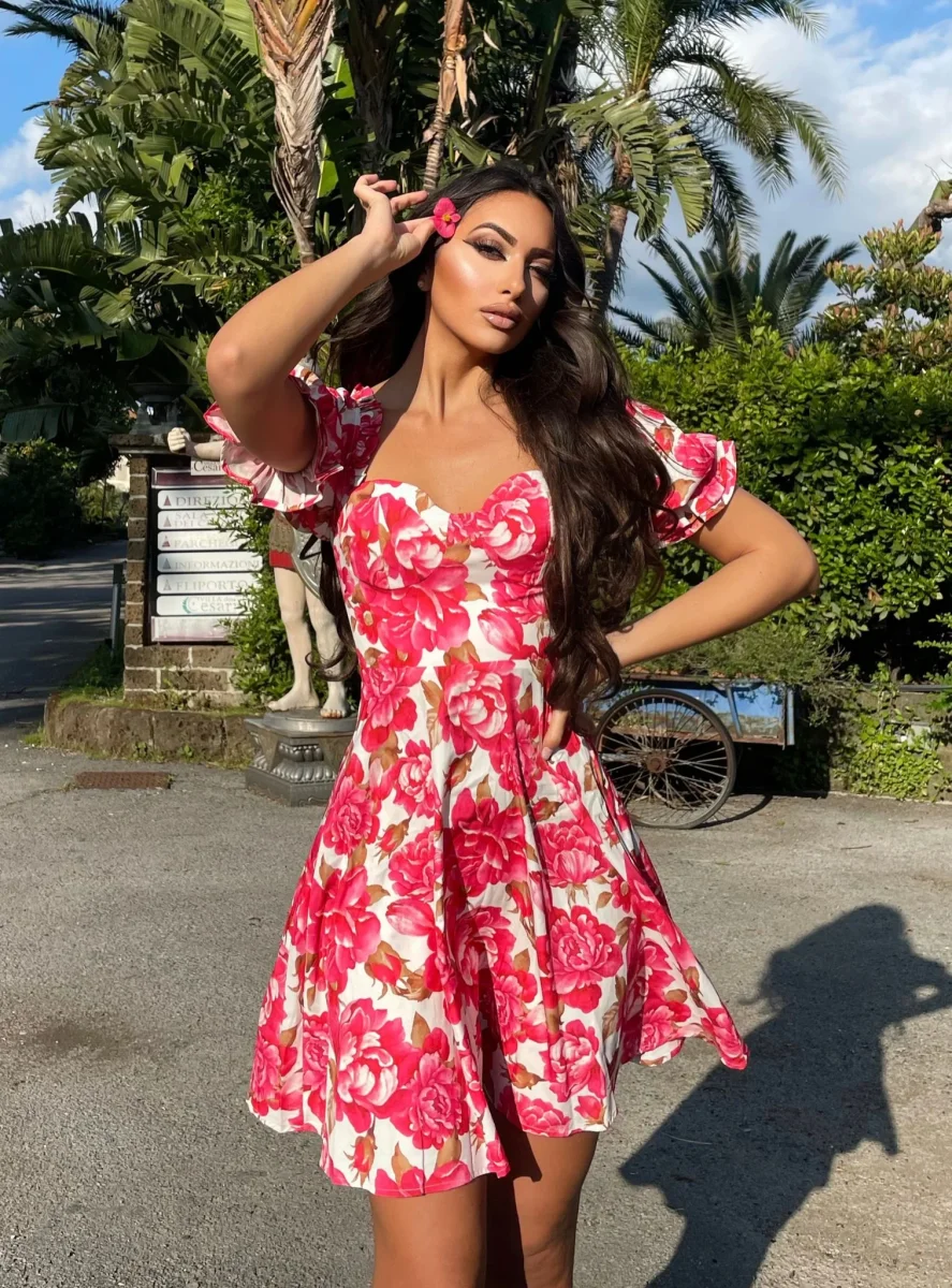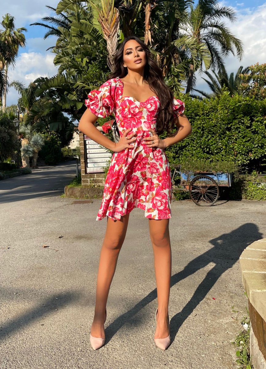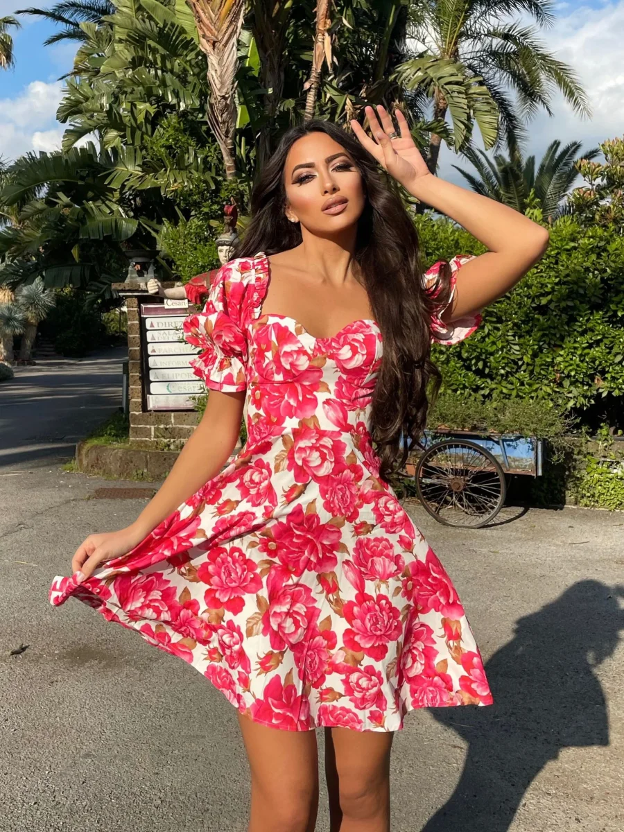 Abito a fantasia floreale con manica a palloncino,