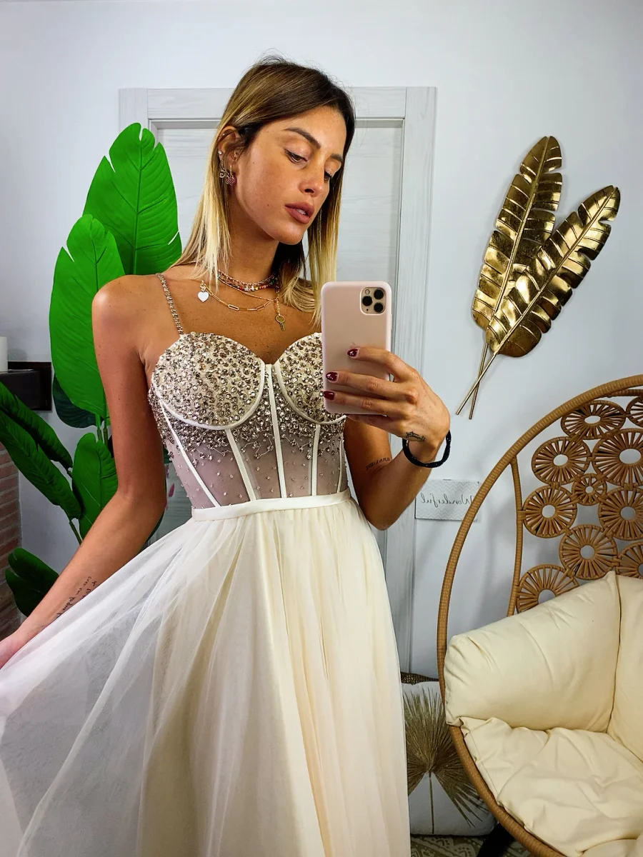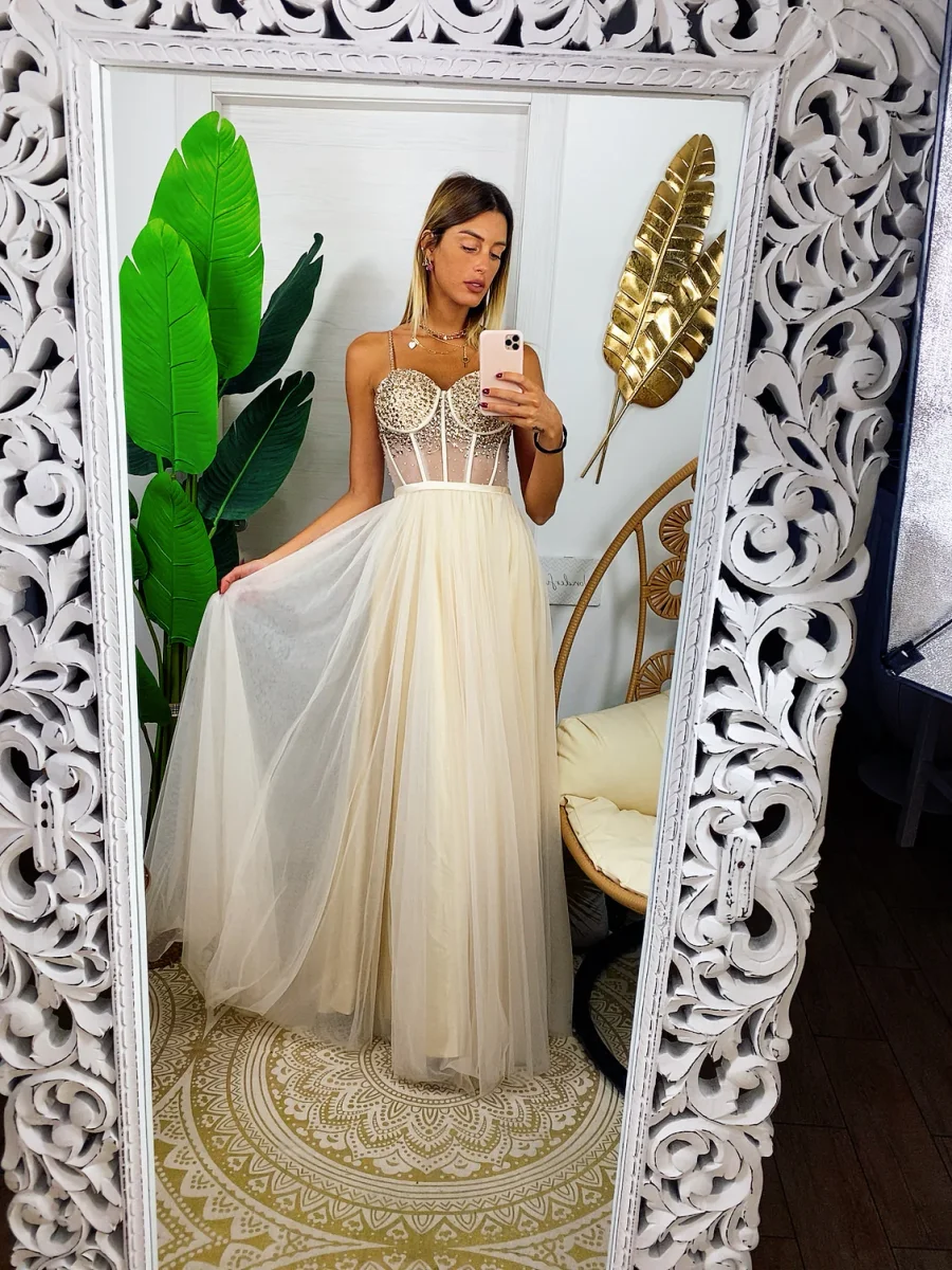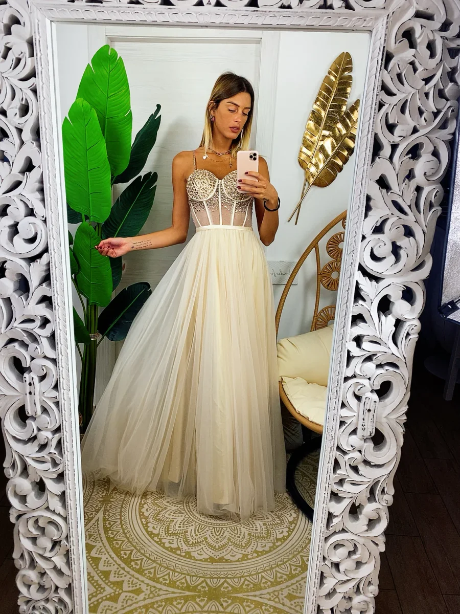 Con i nostri abiti puoi sentirti una principessa. Bellissimo abito con corpetto ricamato a mano. Gonna ampia in tulle