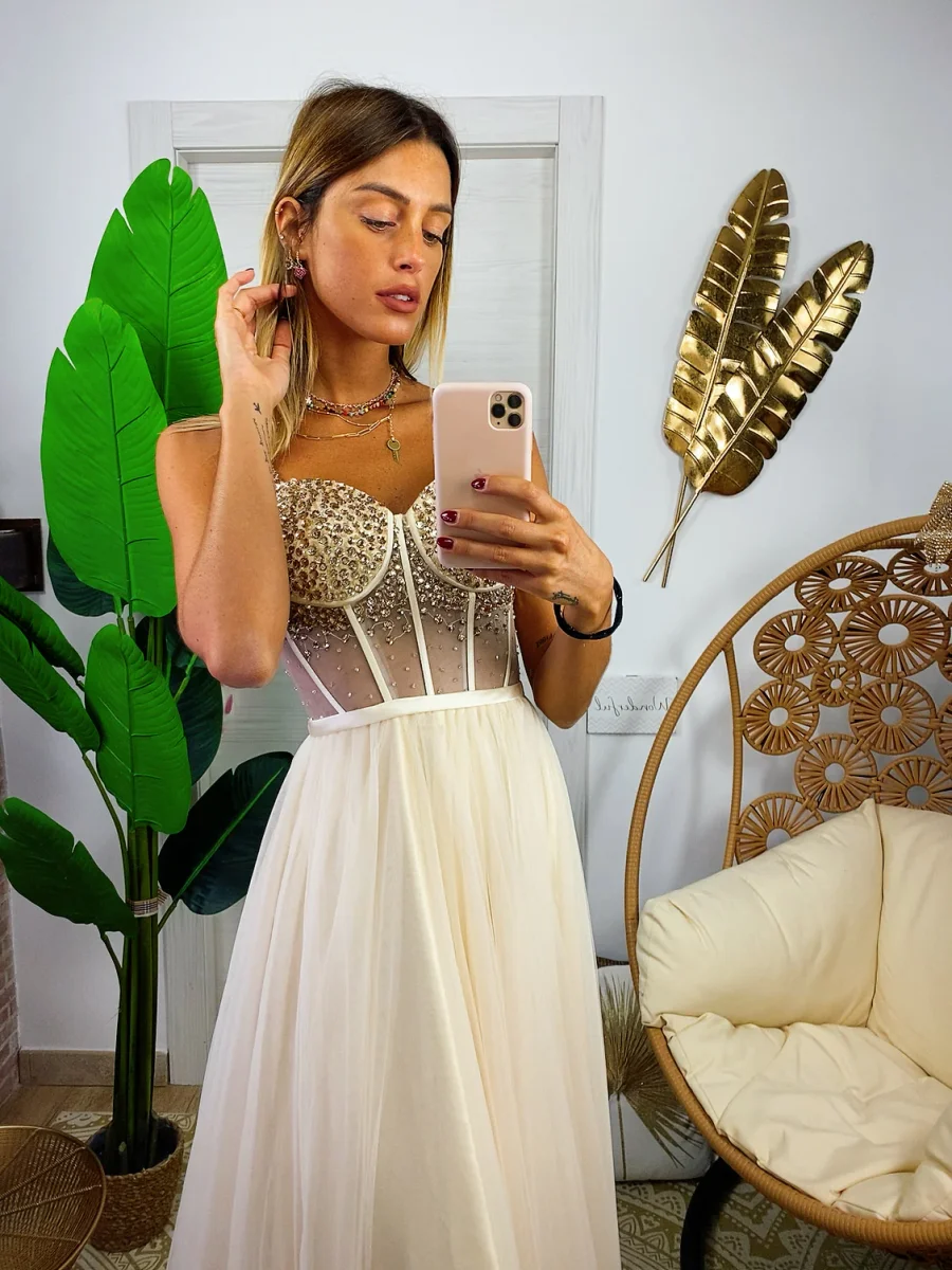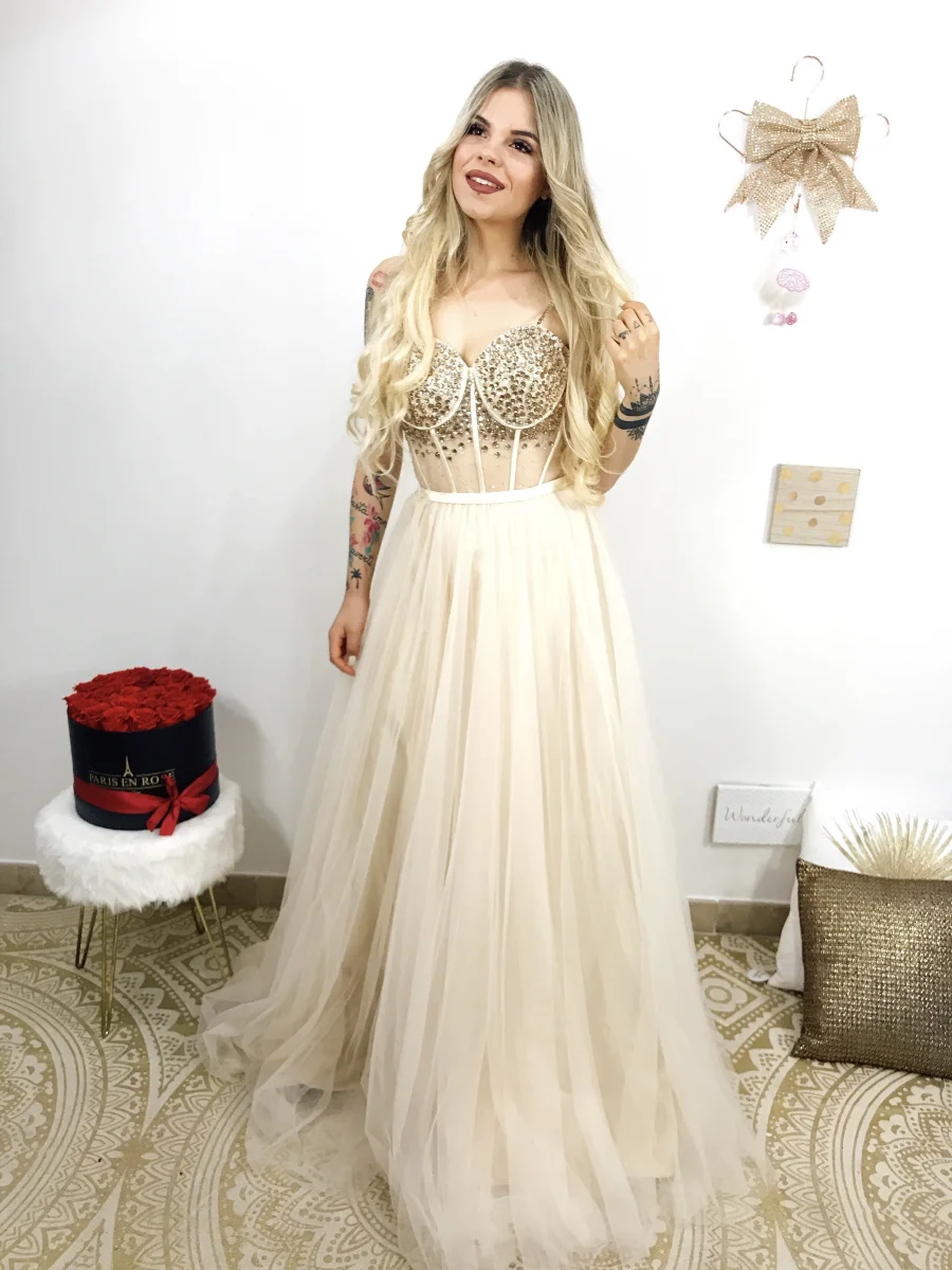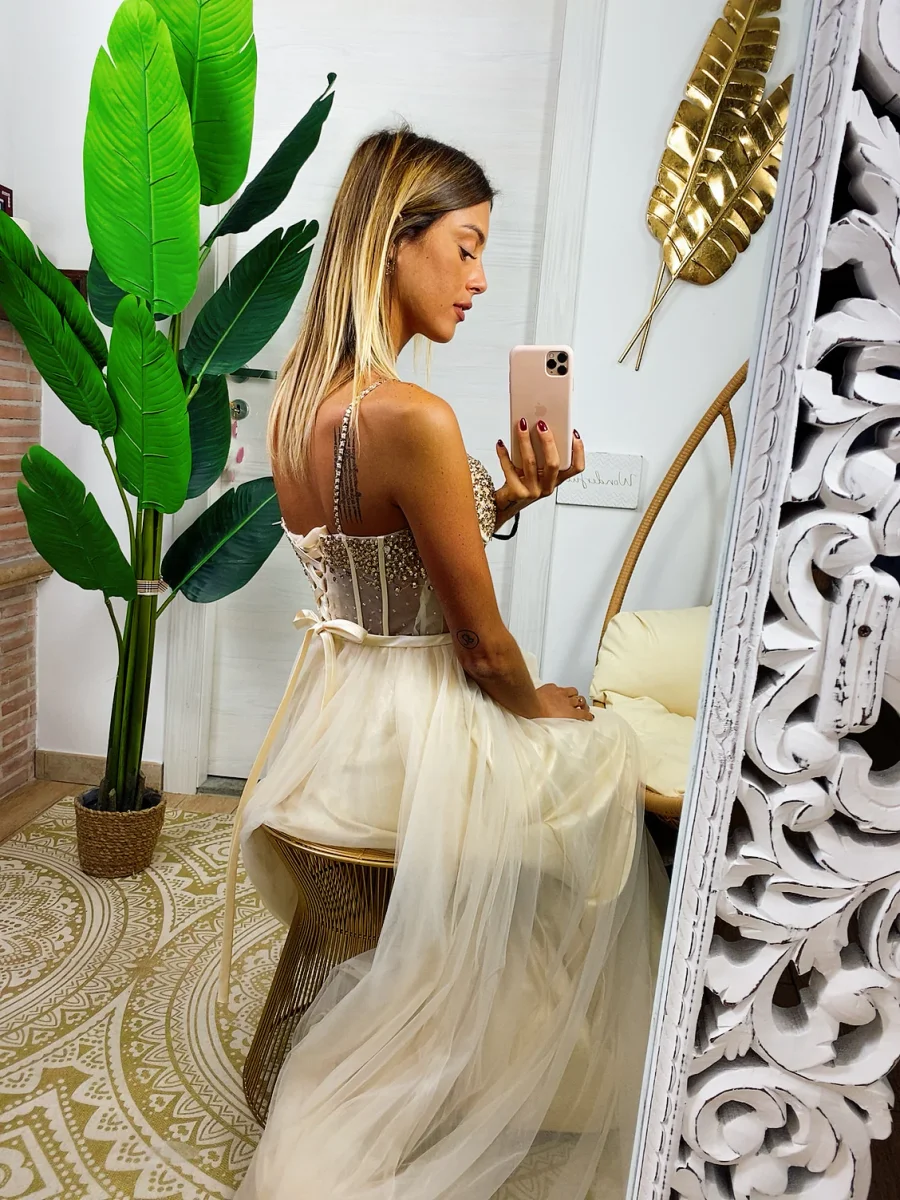 Con i nostri abiti puoi sentirti una principessa. Bellissimo abito con corpetto ricamato a mano. Gonna ampia in tulle