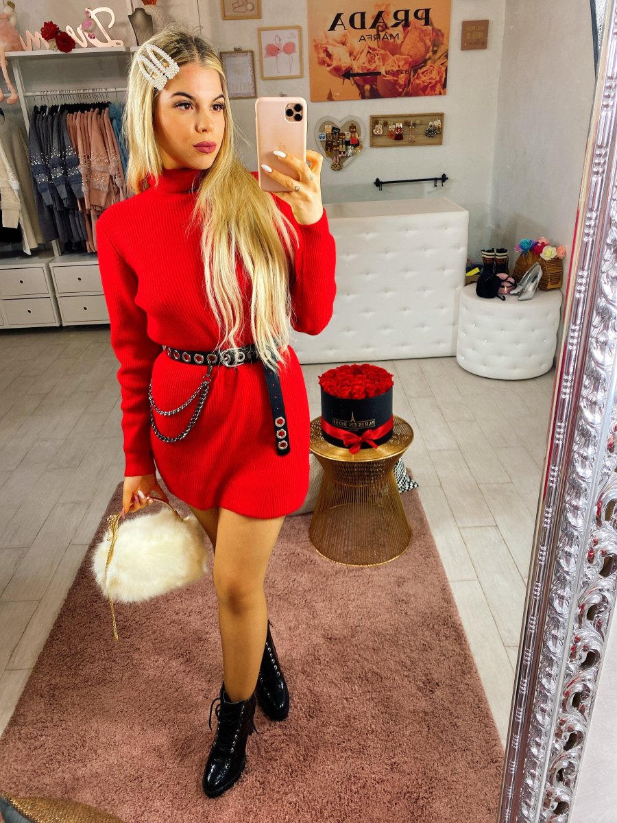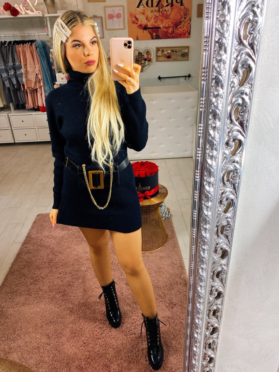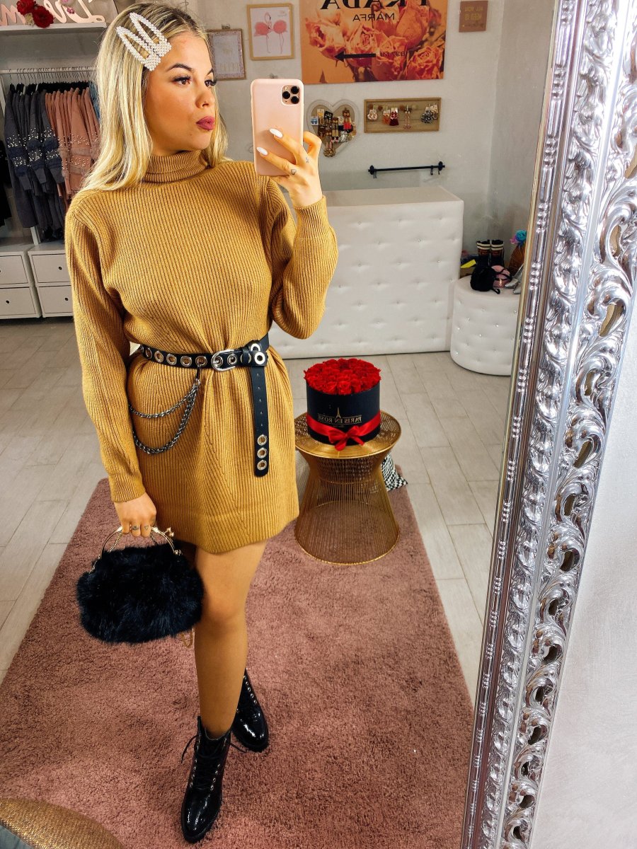 Semplice abito a collo alto, Vestibilità corta. Può essere usato anche con dei leggins.