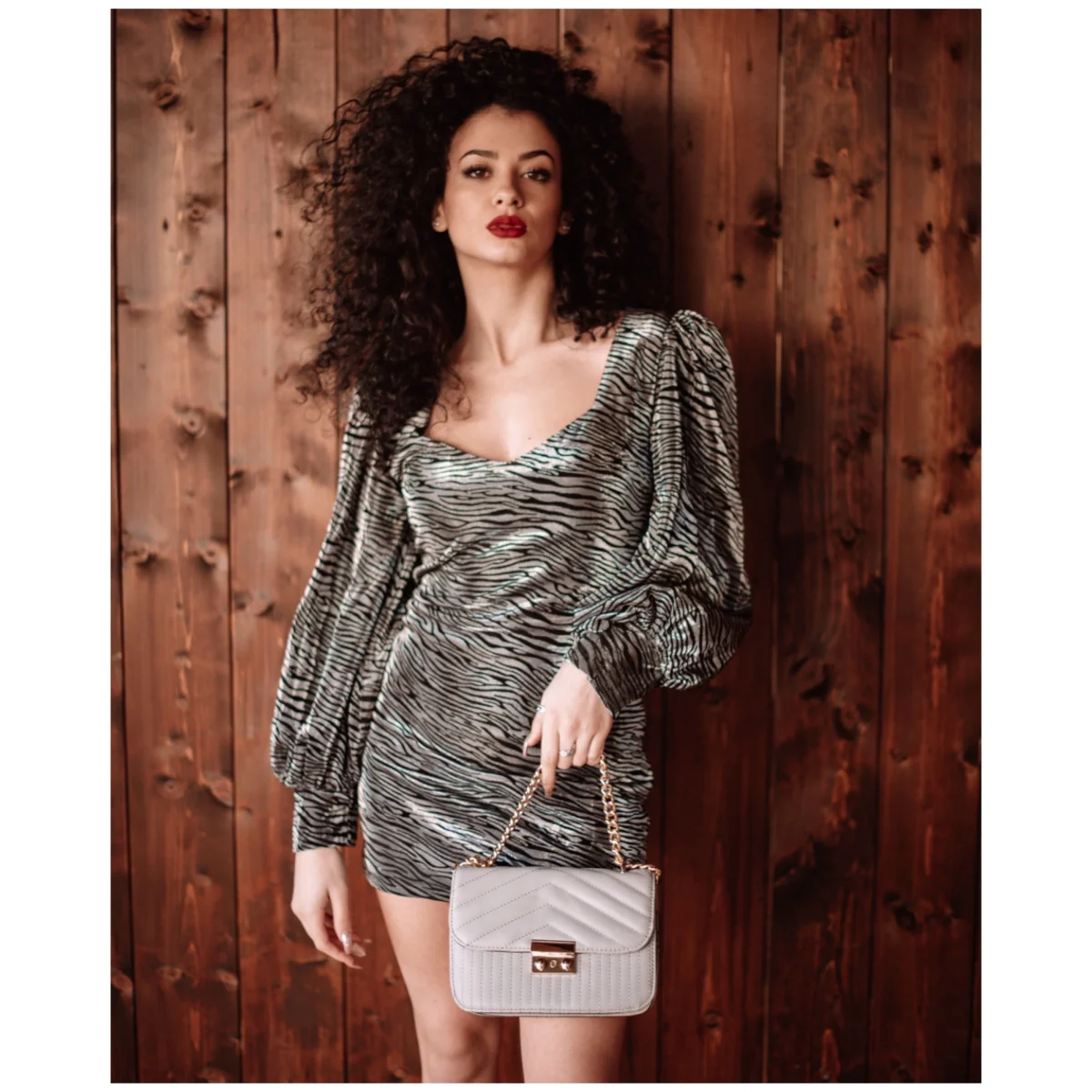 Abito in tessuto Pesante effetto zebrato. Chiusura con zip laterale e polsino. Vestibilità piccola