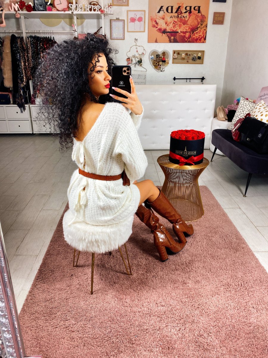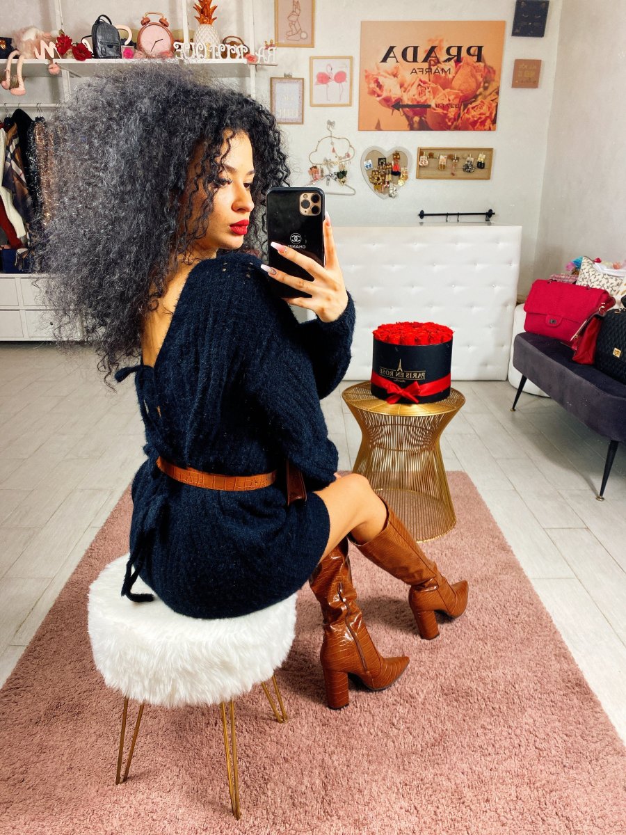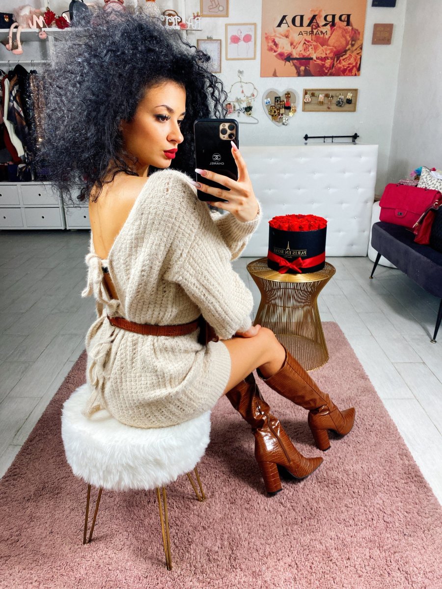 Mini Dress in lana con lacci sulla schiena. Tessuto molto molto morbido
