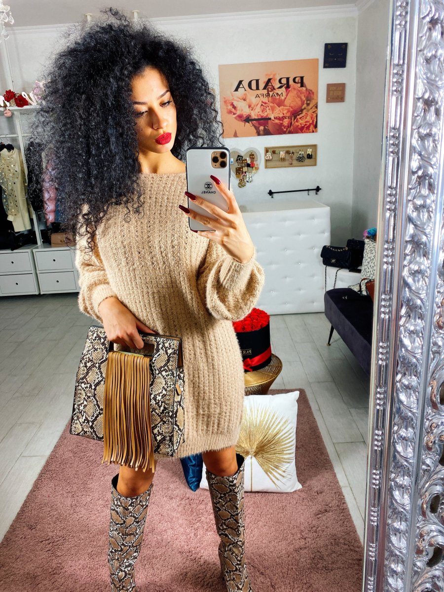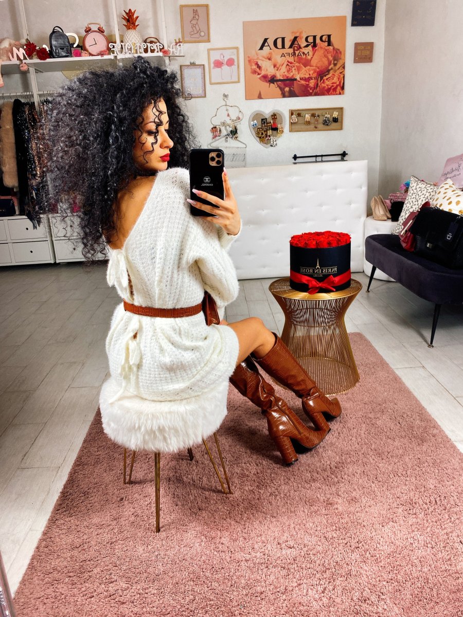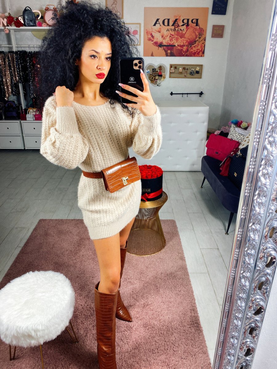 Mini Dress in lana con lacci sulla schiena. Tessuto molto molto morbido