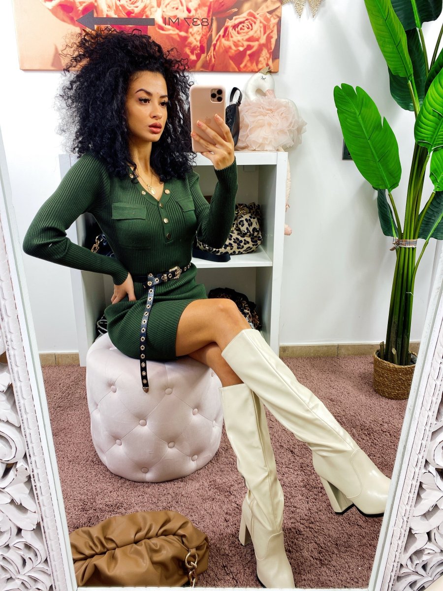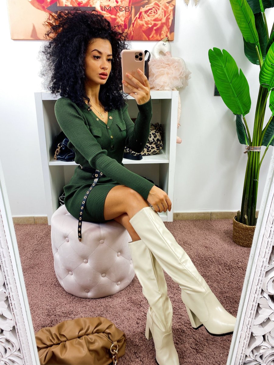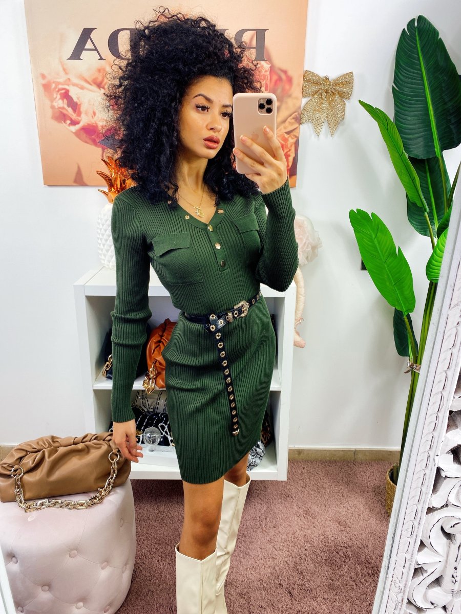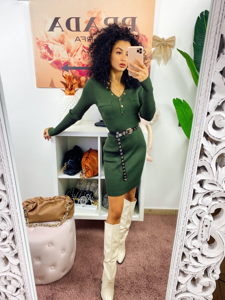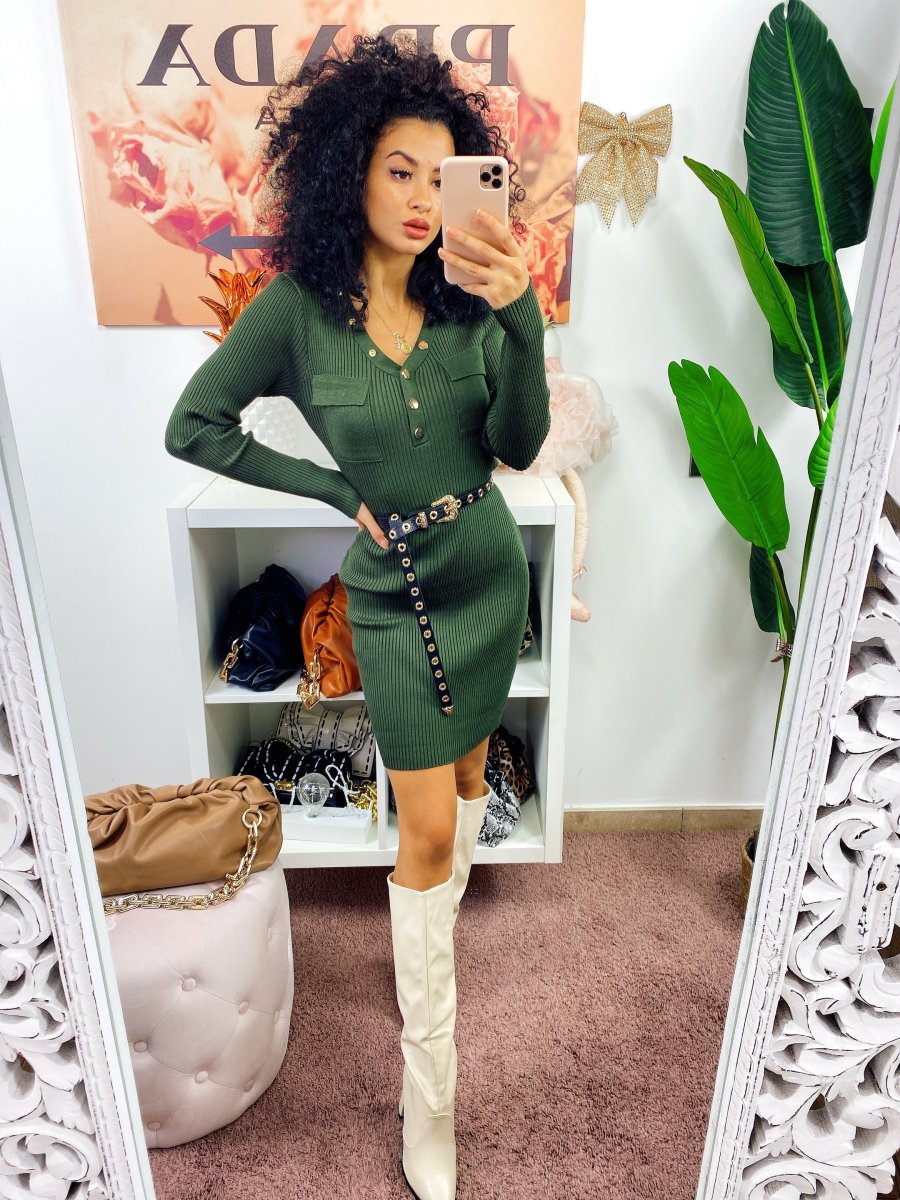 Recensisci per primo “Abito in maglia aderente con bottoni Verde militare”