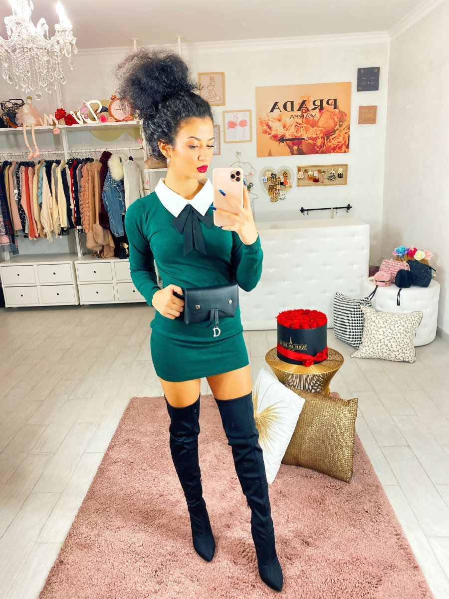 Abito a manica lunga in tessuto molto morbido invernale con collo a camicetta compreso di fiocco.