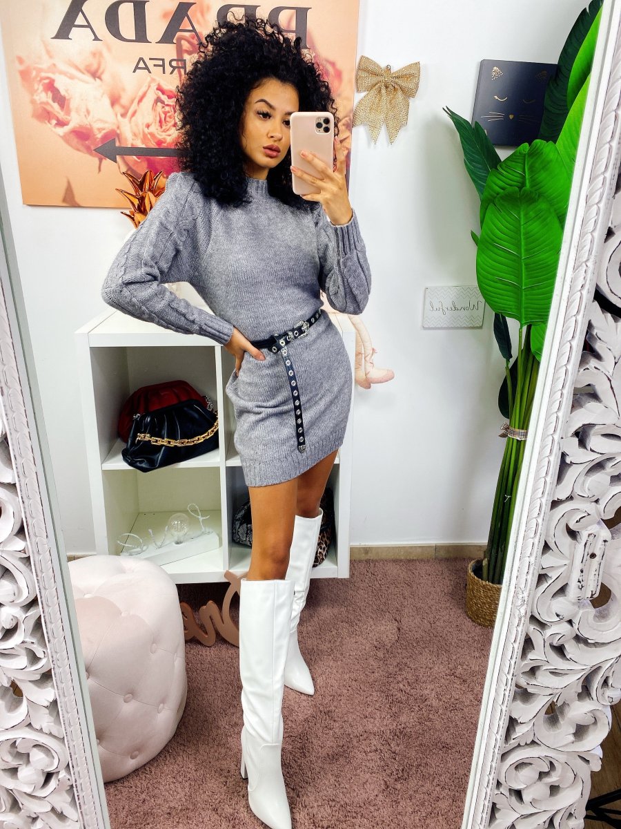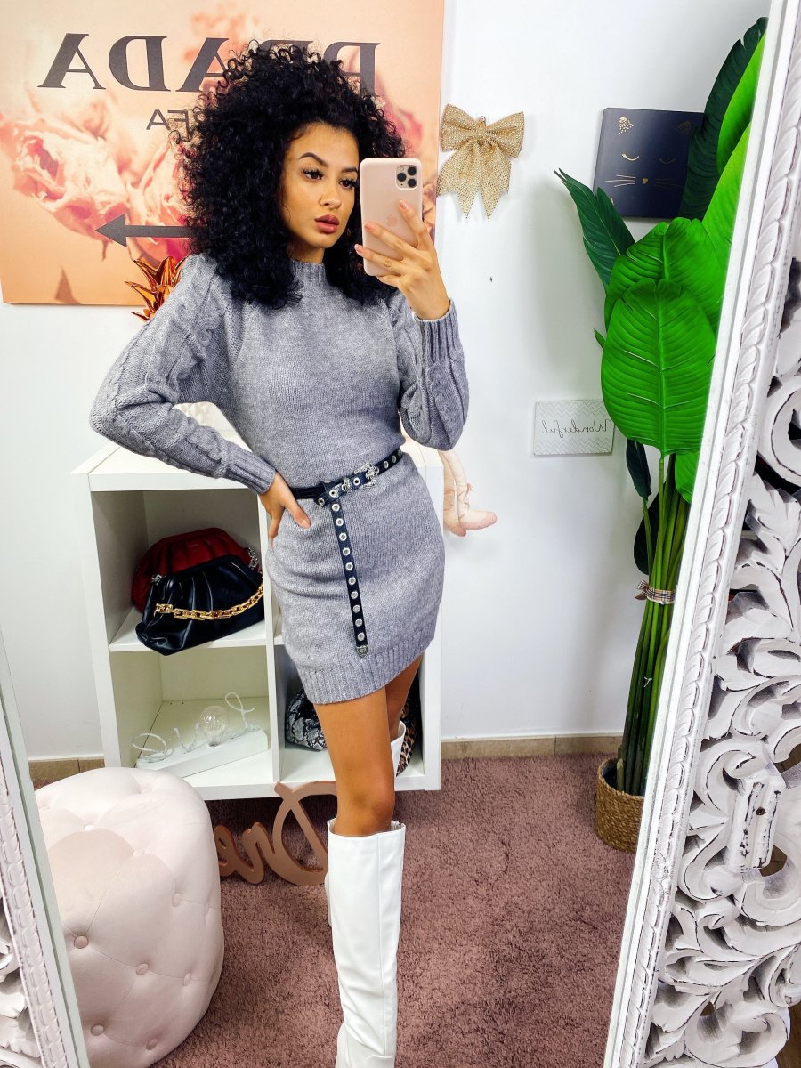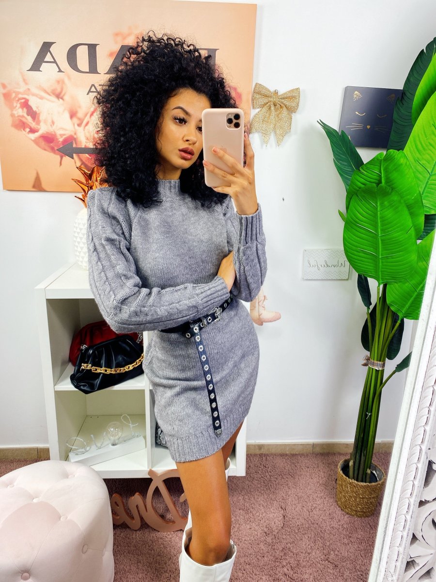 Abito o maxi maglione in tessuto caldo e morbido con spalline bombate e trama a trecce.