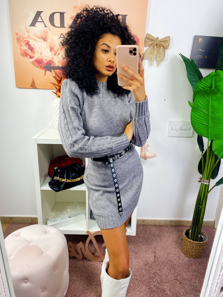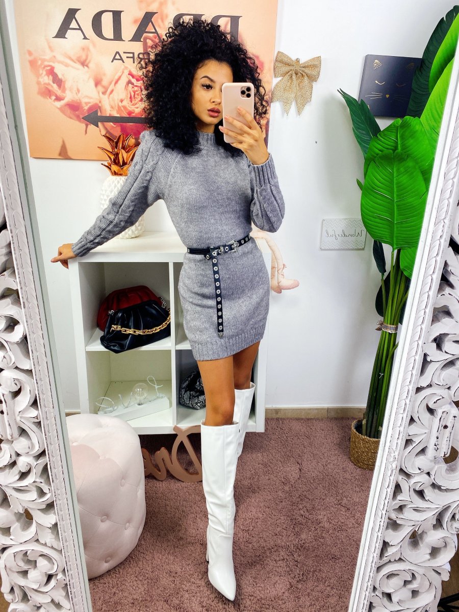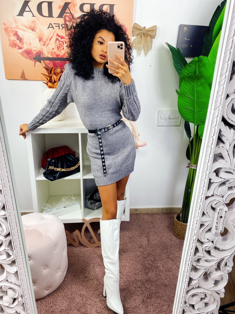 Abito o maxi maglione in tessuto caldo e morbido con spalline bombate e trama a trecce.