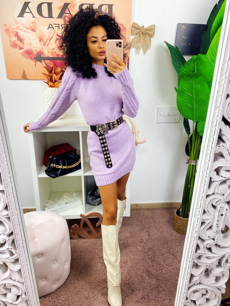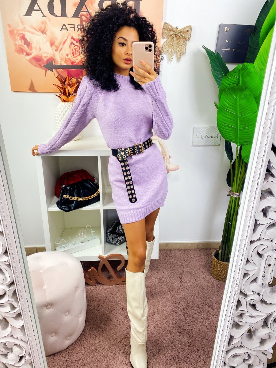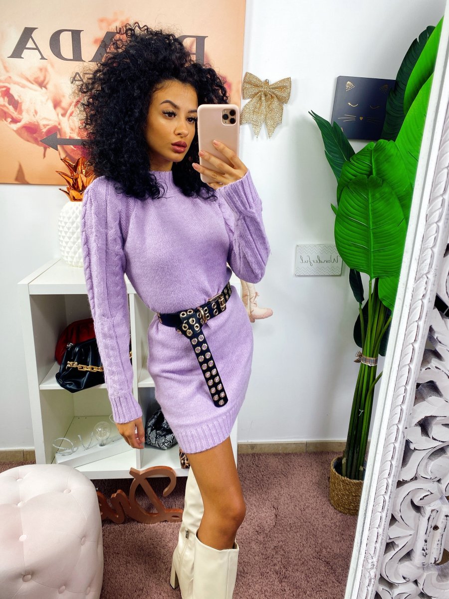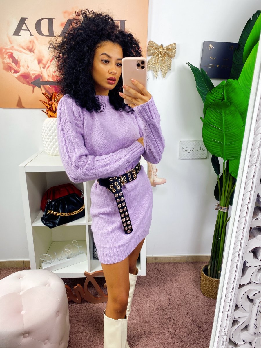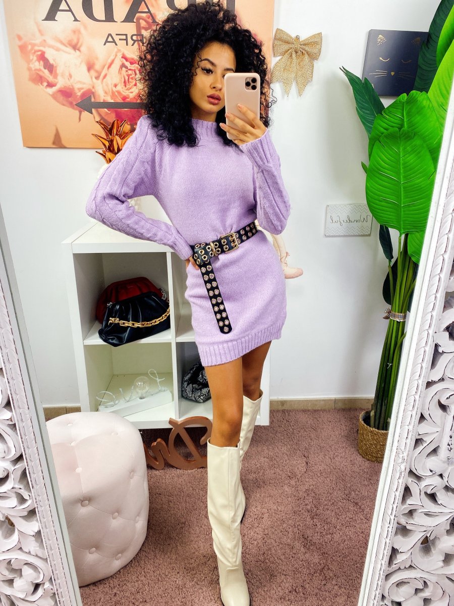 Abito o maxi maglione in tessuto caldo e morbido con spalline bombate e trama a trecce.