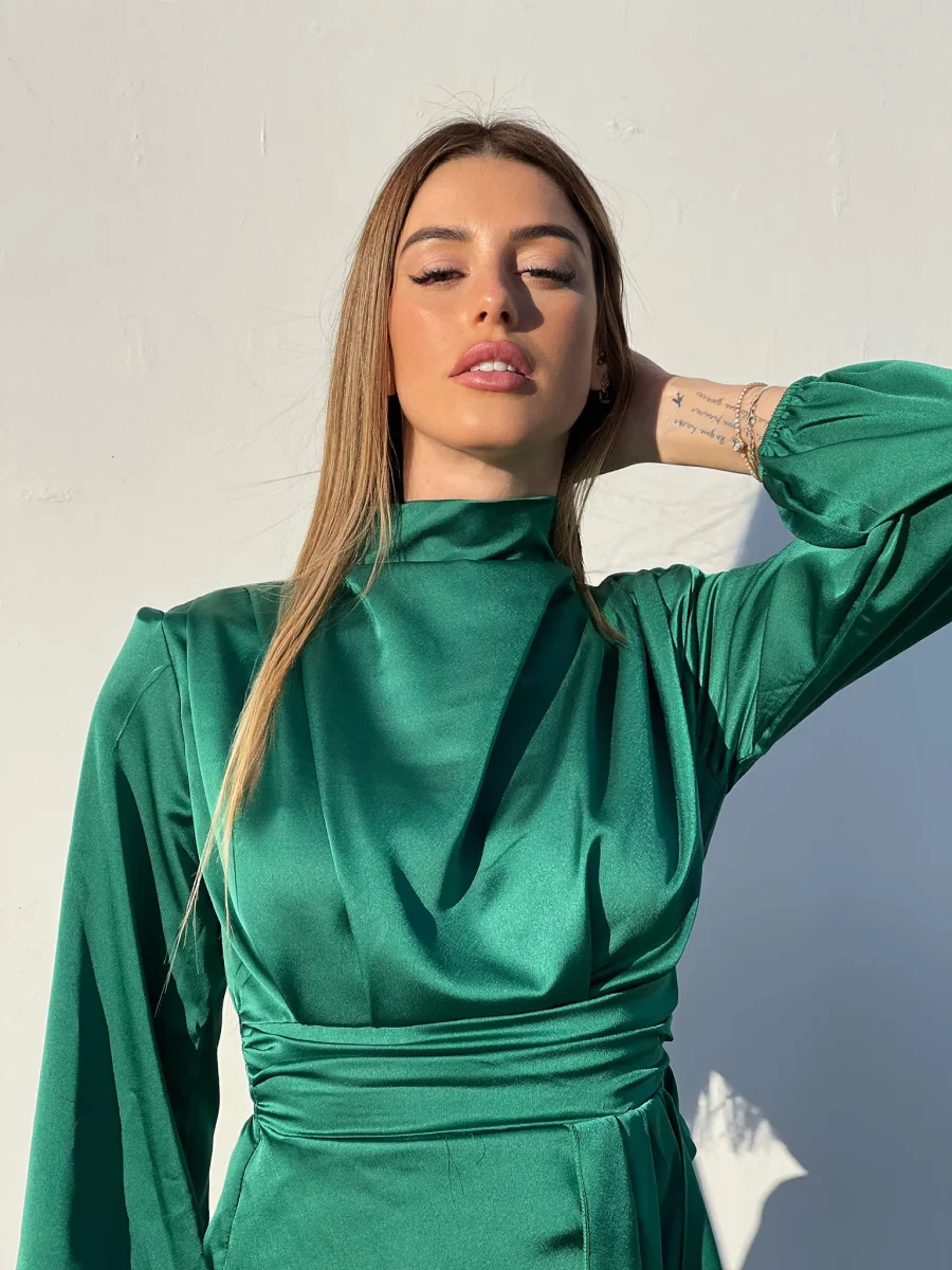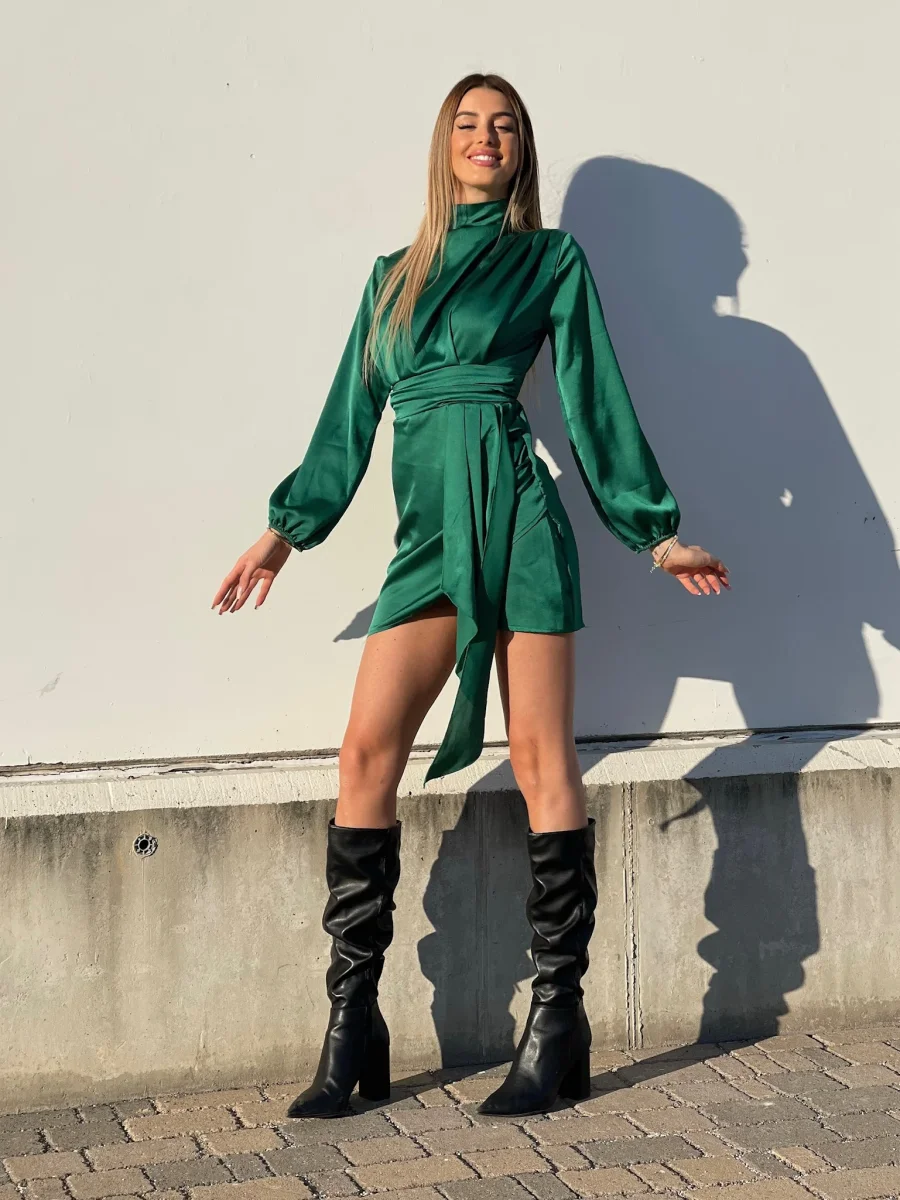 Recensisci per primo “Abito in raso con fusciacca verde smeraldo”